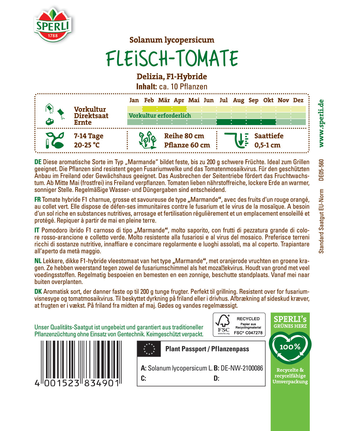 | Kurzbezeichnung : | Fleisch-Tomate Delizia, F1 |