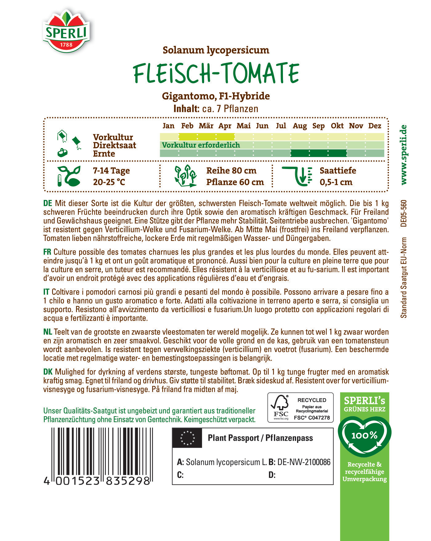 | Kurzbezeichnung : | Fleisch-Tomate Gigantomo, F1 |