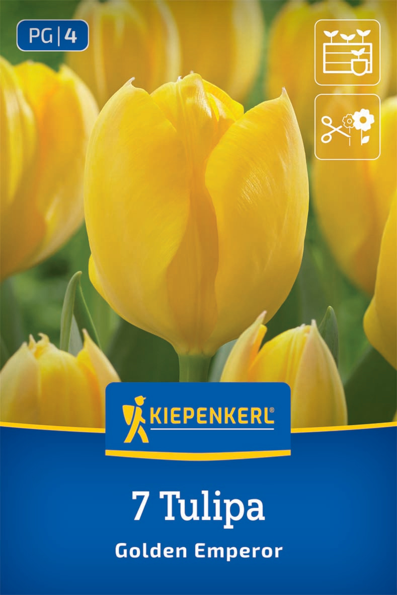 Die Fosteriana-Tulpe 'Golden Emperor' (Tulipa fosteriana) setzt leuchtende Akzente. Diese früh blühende Sorte, mit ihren großen, intensiv gelben Blüten, erreicht eine Höhe von etwa 40 cm. Schon im April entfalten sich die eleganten Blüten auf stabilen, robusten Stielen, die selbst bei kräftigem Wind standhalten.Die 'Golden Emperor' eignet sich ideal für Beete, Kübel, Hochbeete und andere Pflanzgefäße. Dank ihrer natürlichen Erscheinung ist sie hervorragend für eine naturhafte Gartengestaltung geeignet und zeigt als Schnittblume eine besonders stilvolle Wirkung.