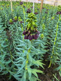 Farbbeschreibung: Schwarz-violett, bereifte Blüten mit anfänglich grünem Schopf| Kurzbezeichnung : | Fritillaria persica Purple Favorite |