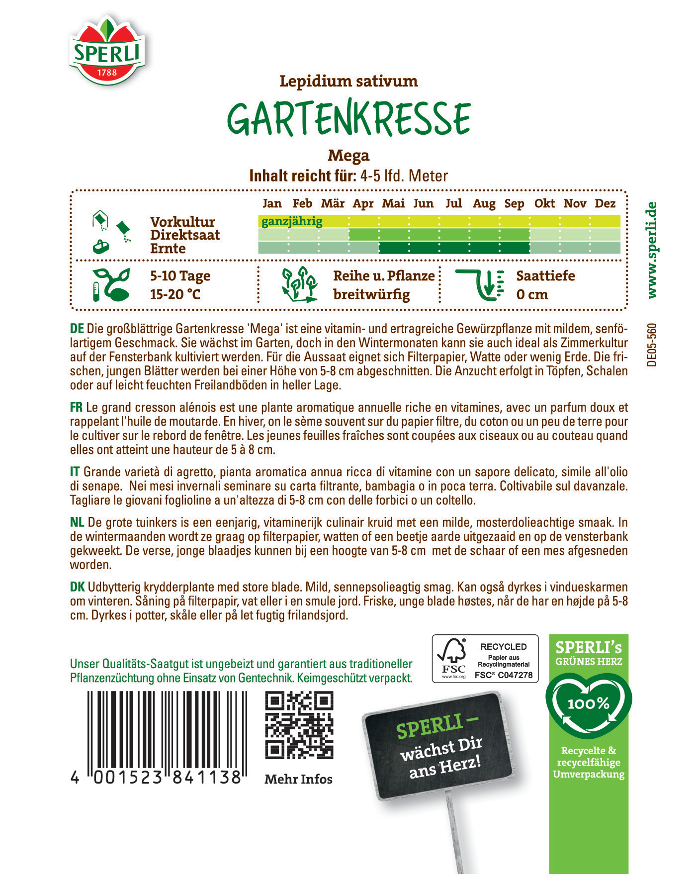 | Kurzbezeichnung : | Gartenkresse Mega |