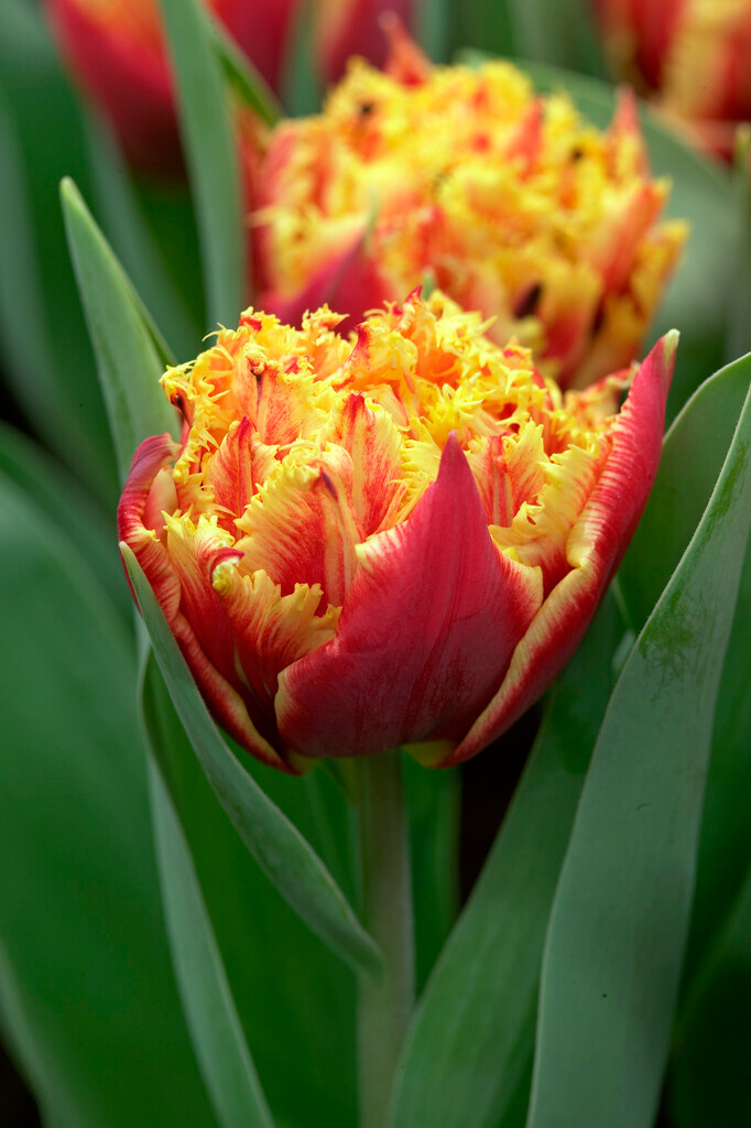 Karminrot, goldgelbe bis gelborange Fransen bzw. Randung| Kurzbezeichnung : | Gefranste Tulpen Golddust |