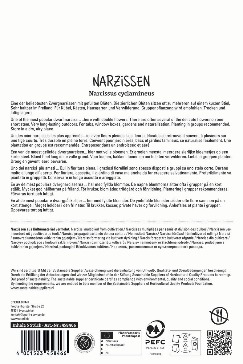 | Botanische Bezeichnung : | Narcissus cyclamineus |