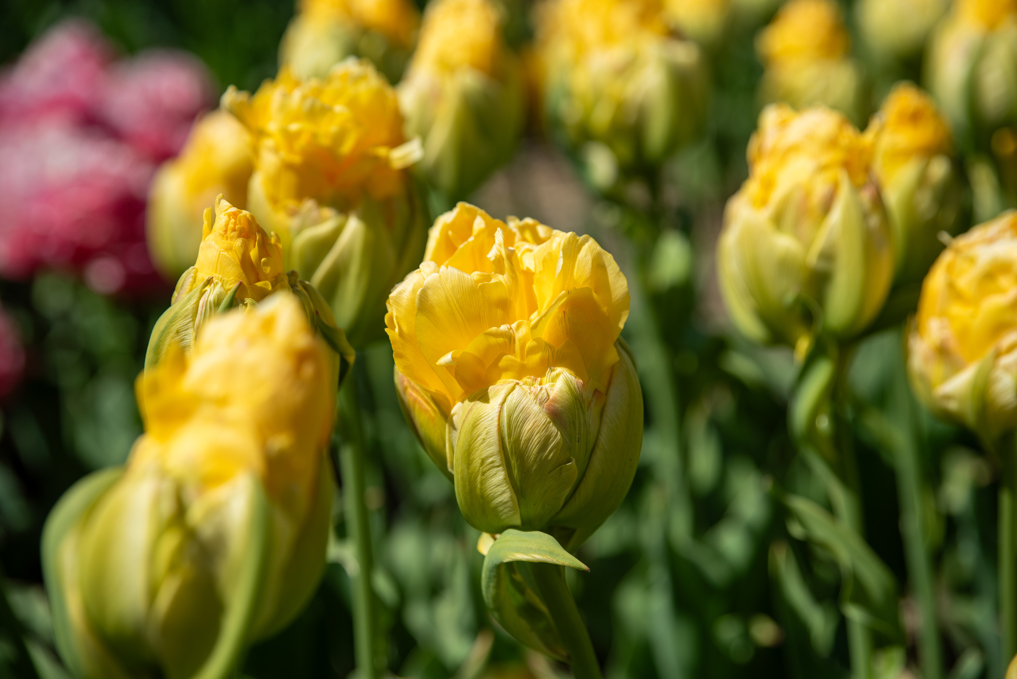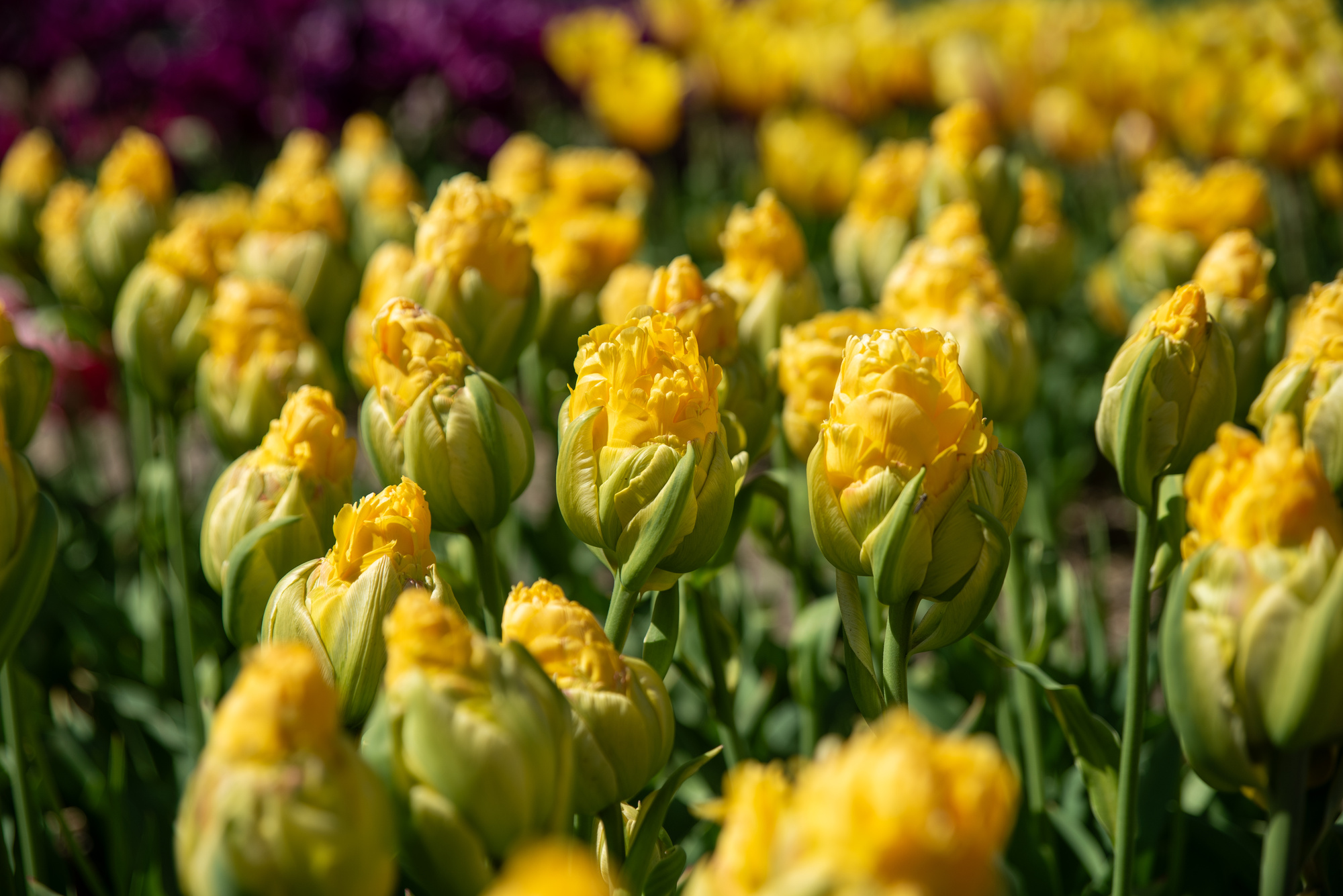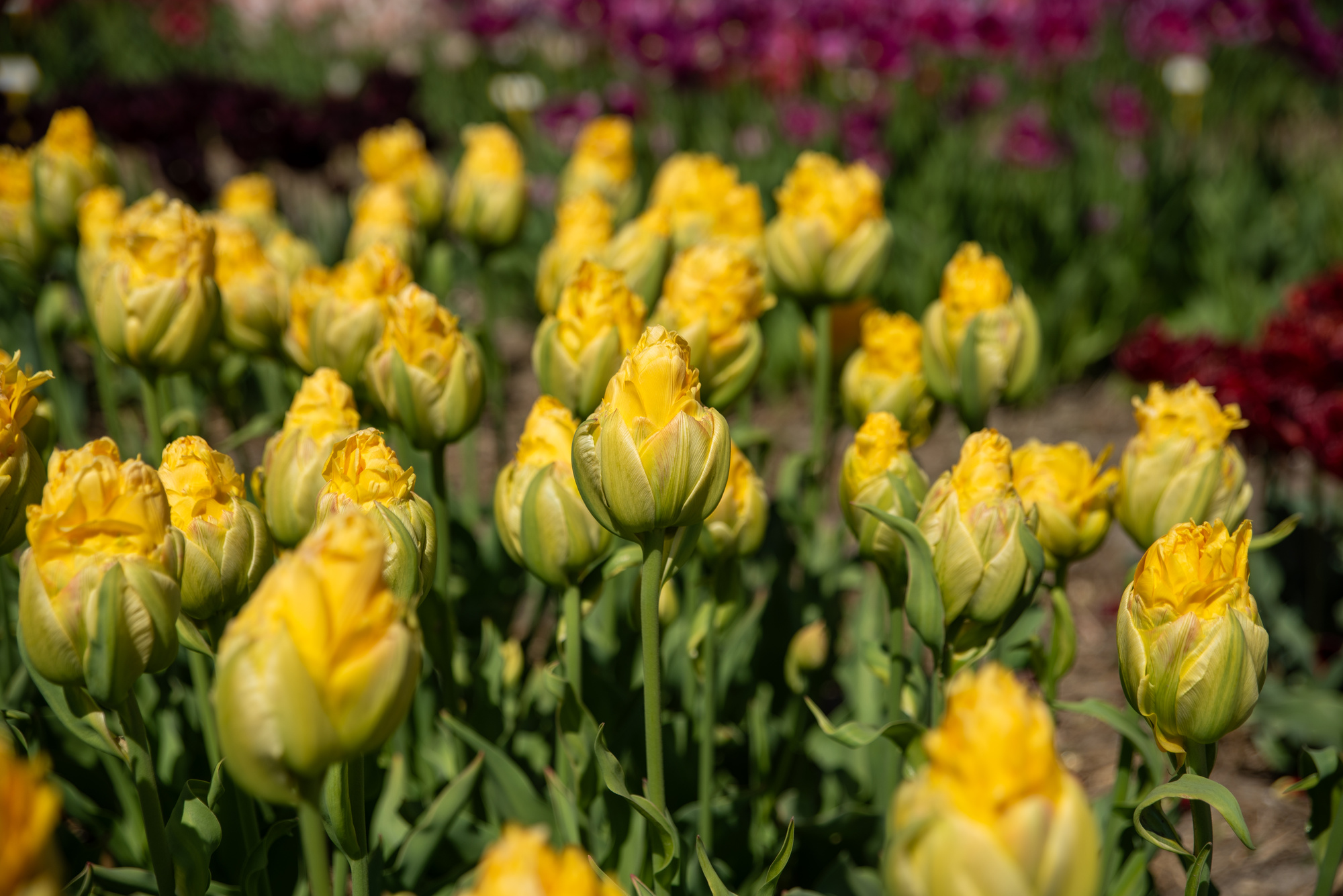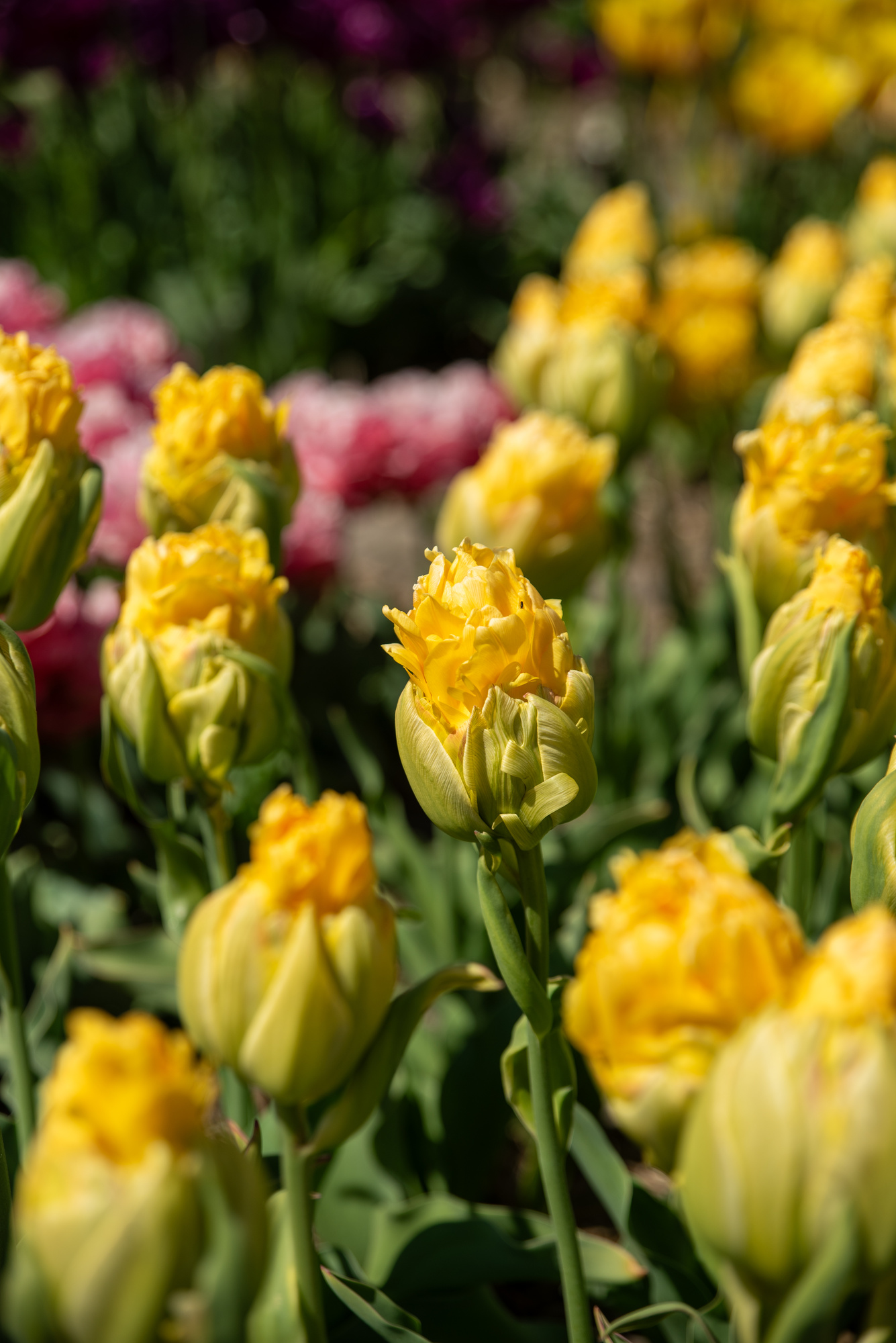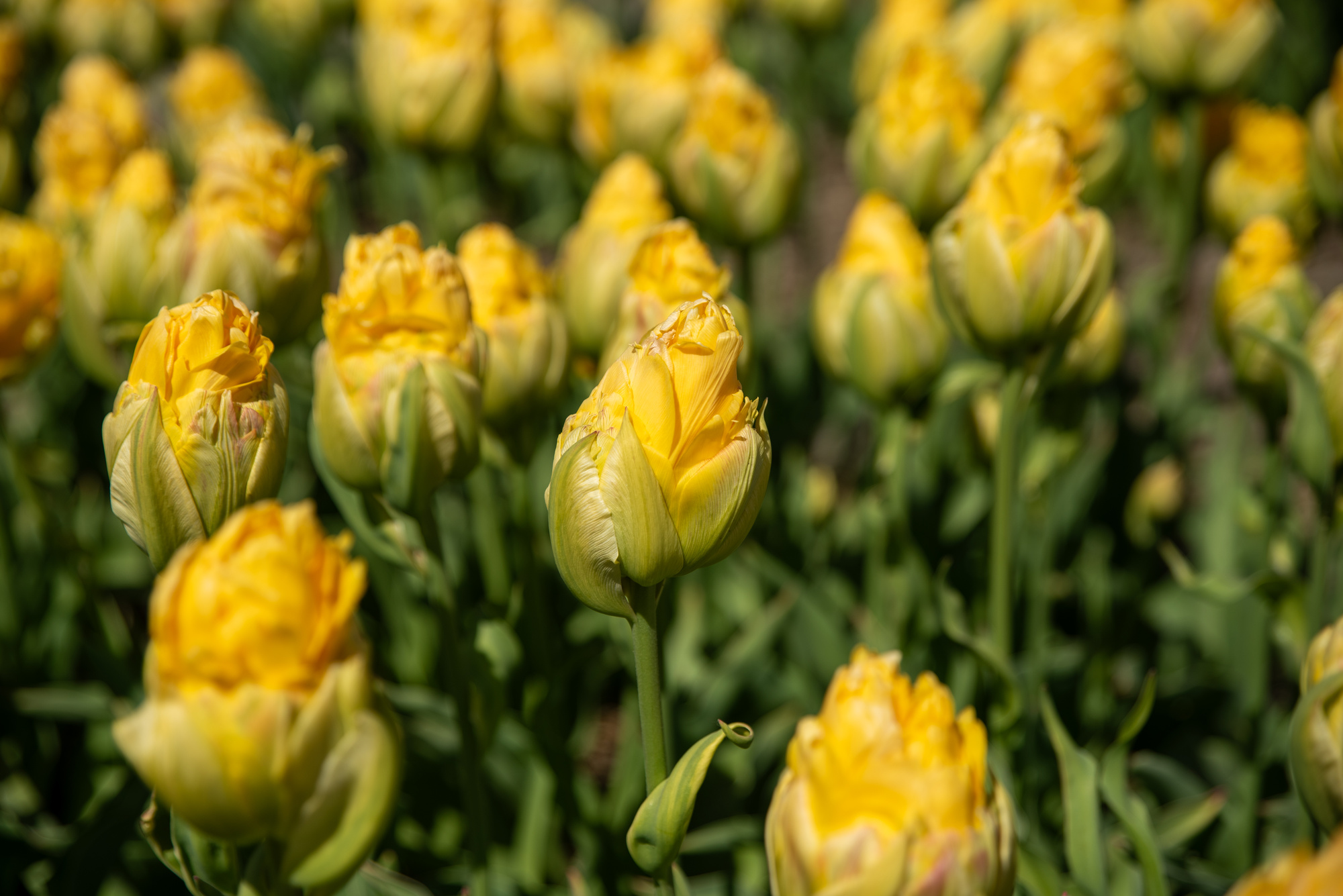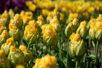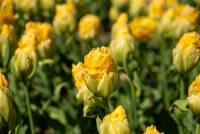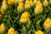Sonnengelbe Blütenblätter, pyramidale Form, mit breit gelbgrünem "Kelch"| Kurzbezeichnung : | Gefüllte Späte Tulpen Vanille Coupe |