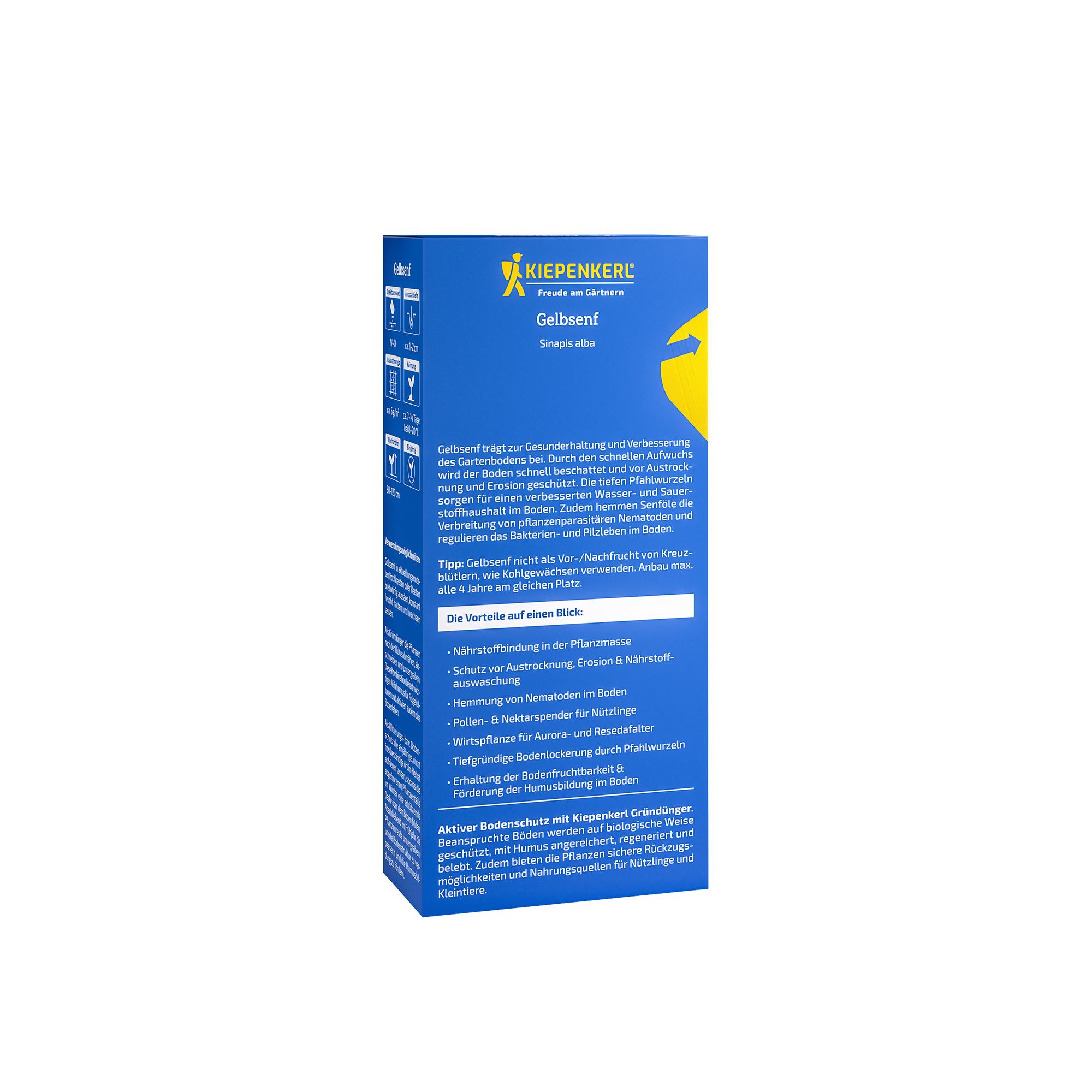 Gelbsenf ist eine hervorragende Wahl, wenn es darum geht, die Gesundheit und Qualität Ihres Gartenbodens zu verbessern. Dank seines schnellen Aufwuchses beschattet Gelbsenf den Boden rasch, was ihn vor Austrocknung und Erosion schützt. Die tiefreichenden Pfahlwurzeln sorgen zudem für eine bessere Wasser- und Sauerstoffzufuhr im Boden. Die Senföle im Gelbsenf hemmen die Ausbreitung von pflanzenparasitären Nematoden und regulieren das Bodenleben, einschließlich Bakterien und Pilzen.