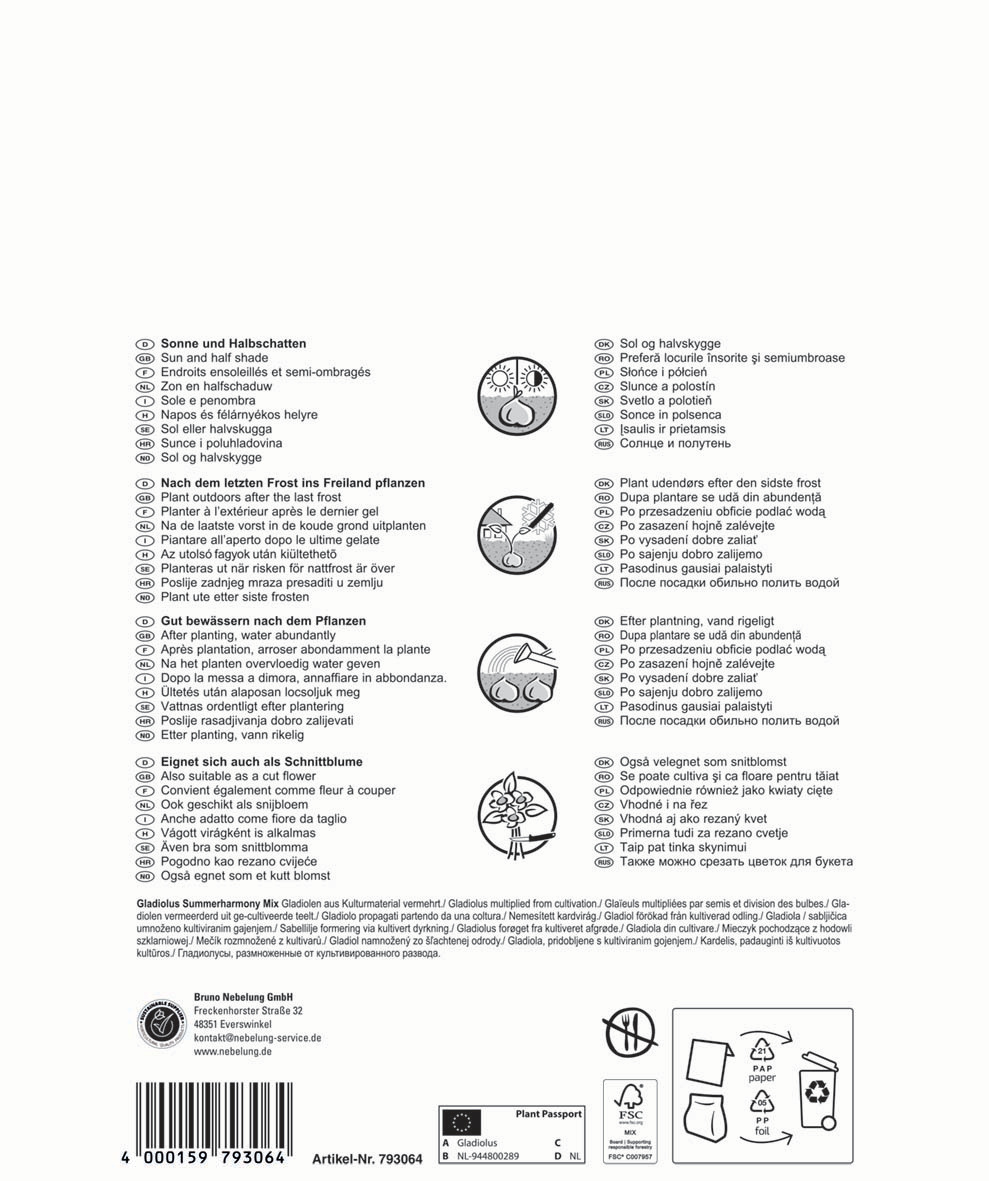 | Kurzbezeichnung : | Gladiole Summerharmony Mix |