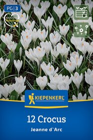 Für einen farblich passenden Übergang vom Winter zum Frühling sorgt der großblumige Krokus 'Jeanne d`Arc', denn seine großen Blüten sind schneeweiß. Die einzelnen Blumen erreichen eine Wuchshöhe von etwa 10 cm, wodurch es möglich ist, den Krokus sowohl auf Balkonen als auch im Garten anzupflanzen.