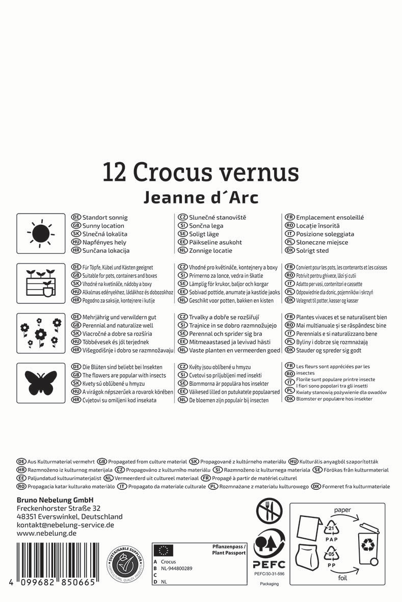 | Kurzbezeichnung : | Großblumiger Krokus Jeanne d`Arc |