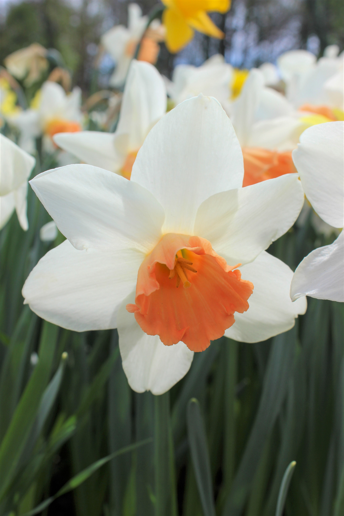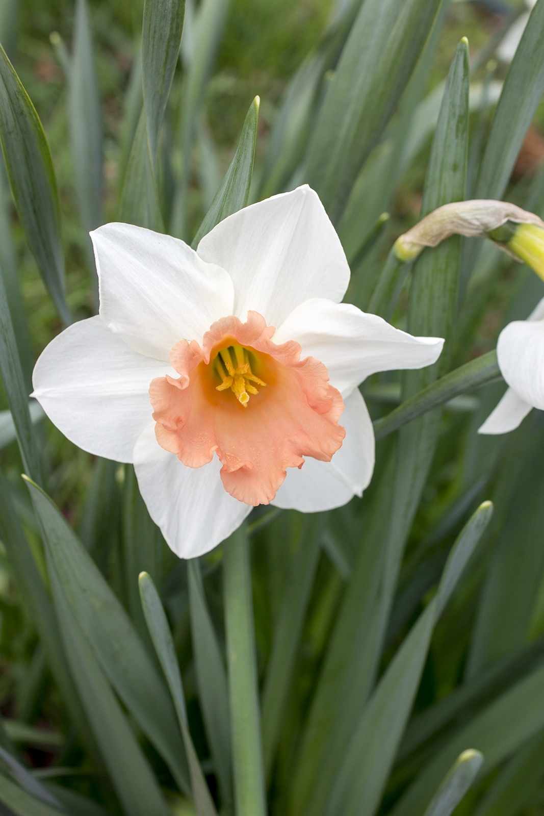 Farbbeschreibung: Weißer Kranz, Lachsrosa Krone| Kurzbezeichnung : | Großkronige Narzissen Accent |