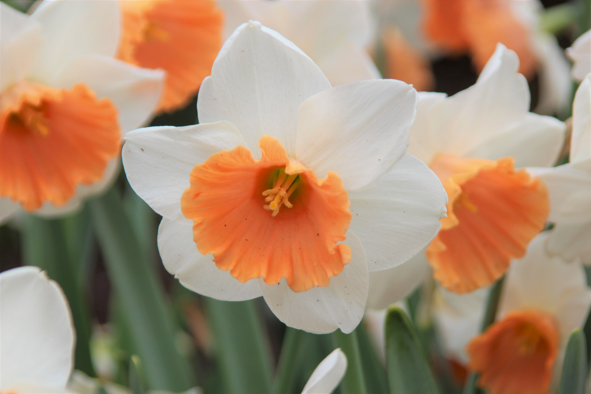 Farbbeschreibung: Weiß, Kräftig Rosaorange Krone| Kurzbezeichnung : | Großkronige Narzissen Chromacolor |