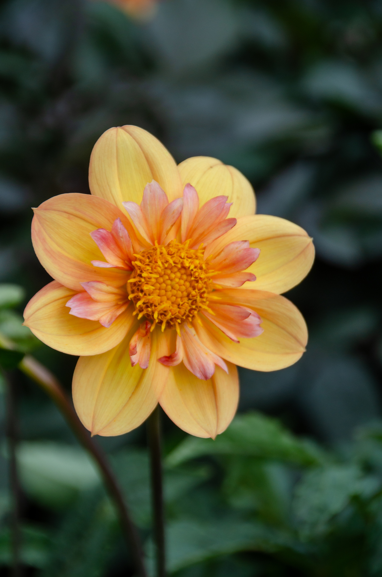 Farbbeschreibung: Pastellorange, Zungenblüten mit rosa Spitzen