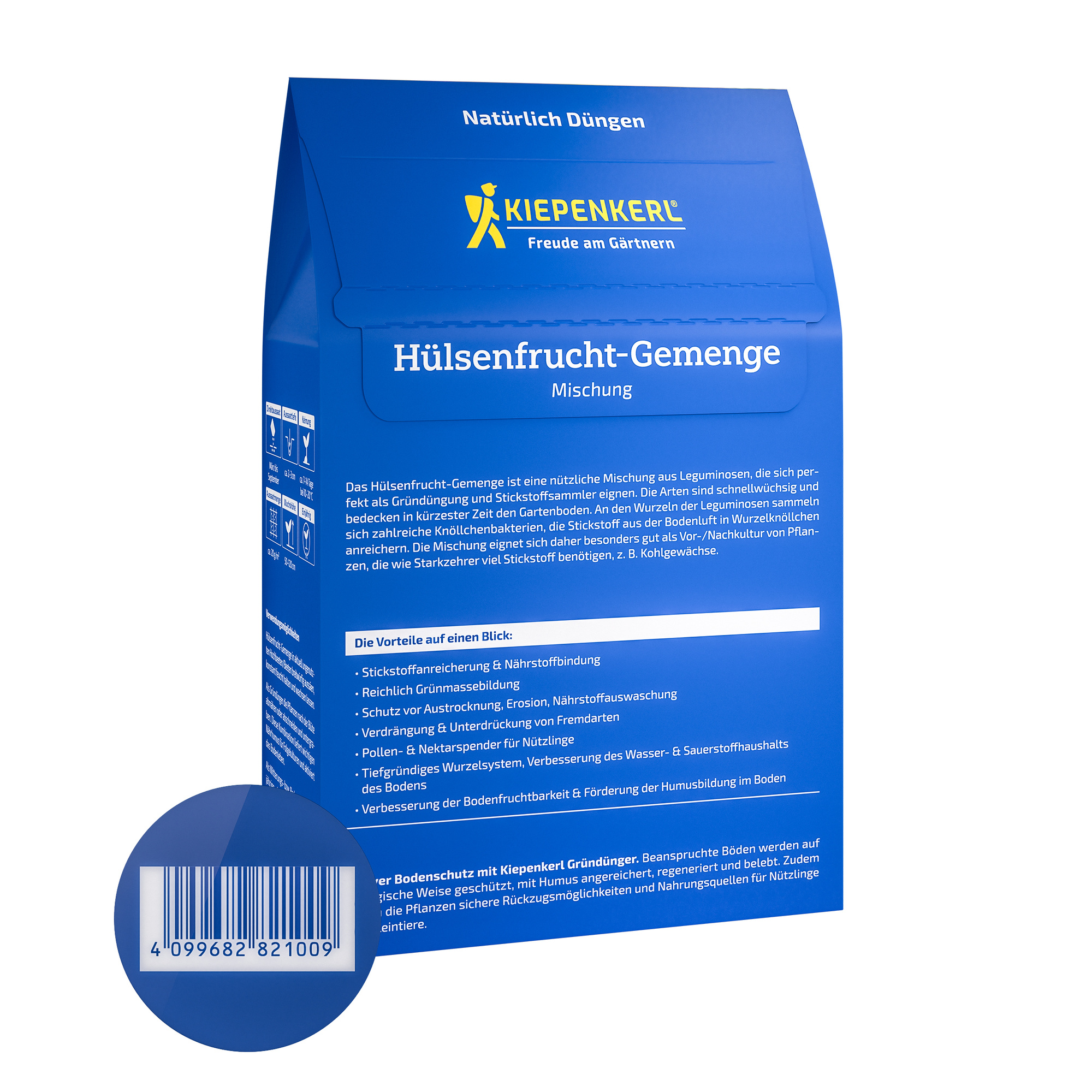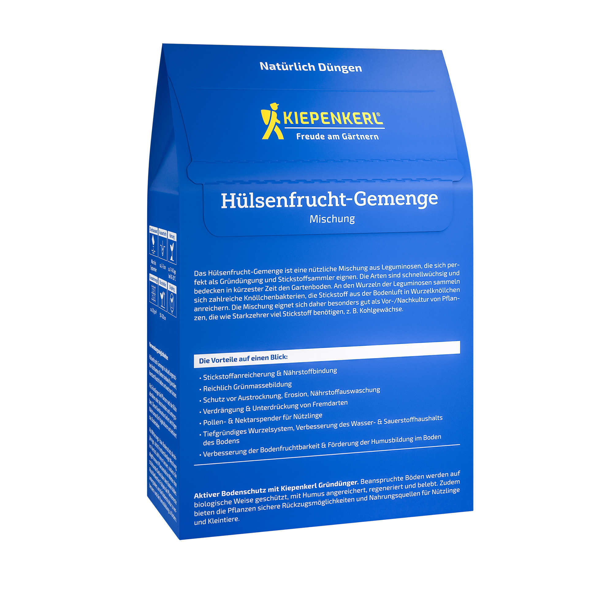 Unser Hülsenfrucht-Gemenge besteht aus einer sorgfältig ausgewählten Mischung von Leguminosen, die als Gründünger und Stickstoffsammler herausragende Dienste leisten. Diese schnell wachsenden Pflanzen bedecken in kürzester Zeit Ihren Gartenboden und sorgen für eine effektive Bodensanierung. Die Wurzeln der Leguminosen beherbergen zahlreiche Knöllchenbakterien, die Stickstoff aus der Bodenluft aufnehmen und in Wurzelknöllchen anreichern. Diese Eigenschaft macht das Hülsenfrucht-Gemenge zur idealen Vor- oder Nachkultur für Pflanzen mit hohem Stickstoffbedarf, wie zum Beispiel Kohlgewächse.