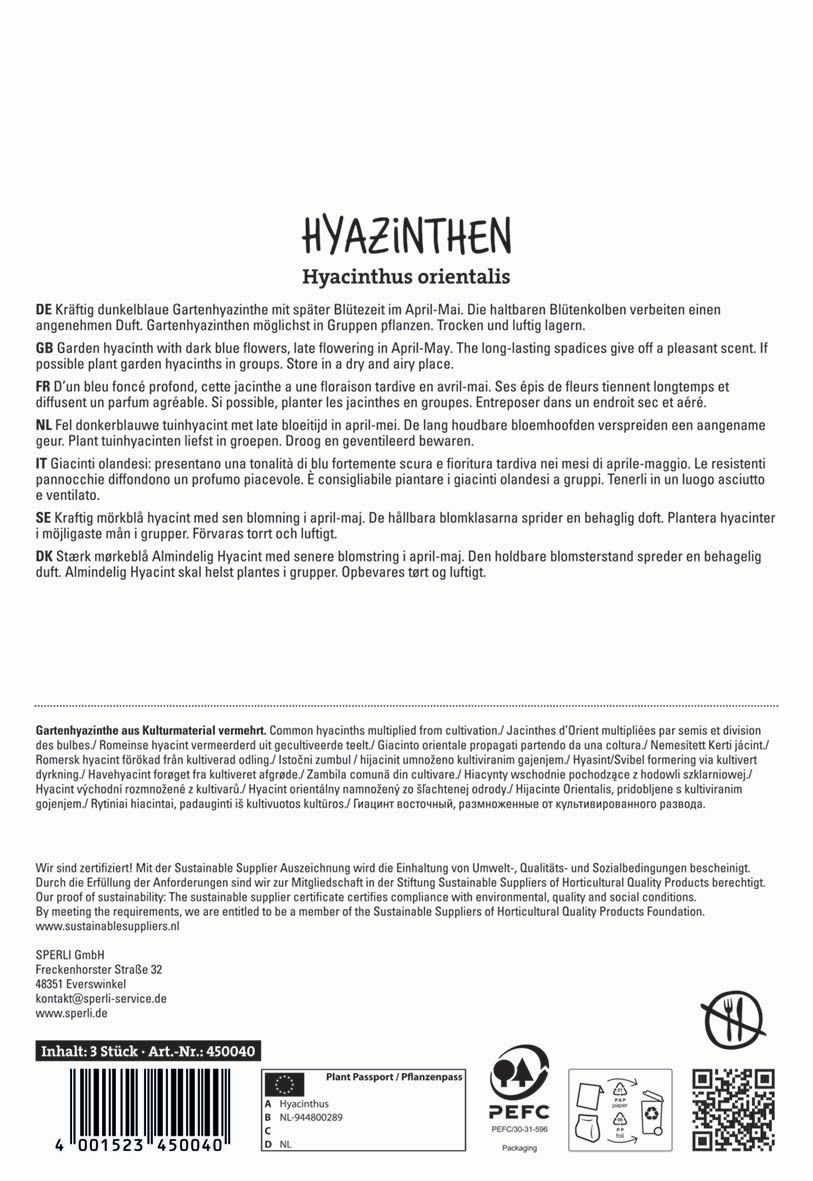 | Botanische Bezeichnung : | Hyacinthus orientalis |