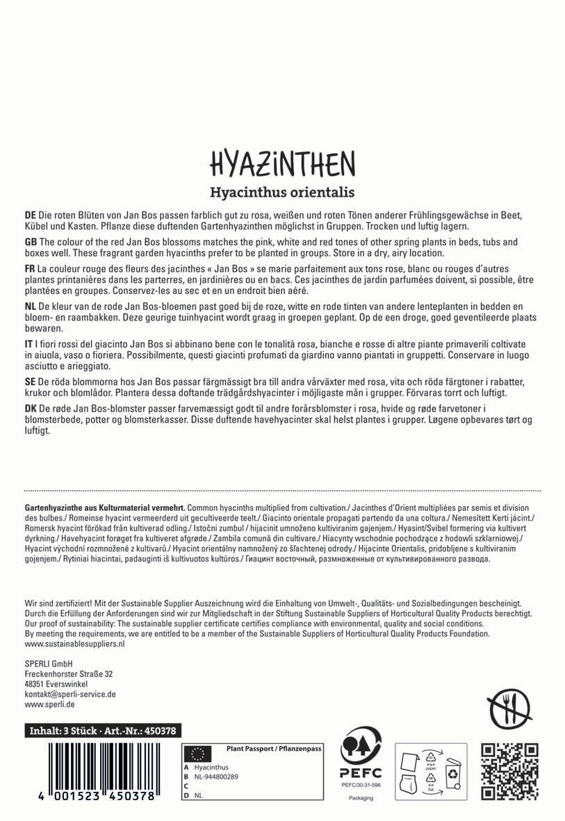 | Botanische Bezeichnung : | Hyacinthus orientalis |