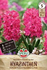 Bei der Hyazinthe 'Jan Bos' handelt es sich um eine prächtige Freiland-Hyazinthe, die im März und April herrlich duftende Blütenstände in einem leuchtenden Rosarot ausbildet. Du kannst sie gerne mit anderen Frühlingsblumen kombinieren oder sie als Gruppe pflanzen, um besonders tolle optische Effekte zu erzielen.