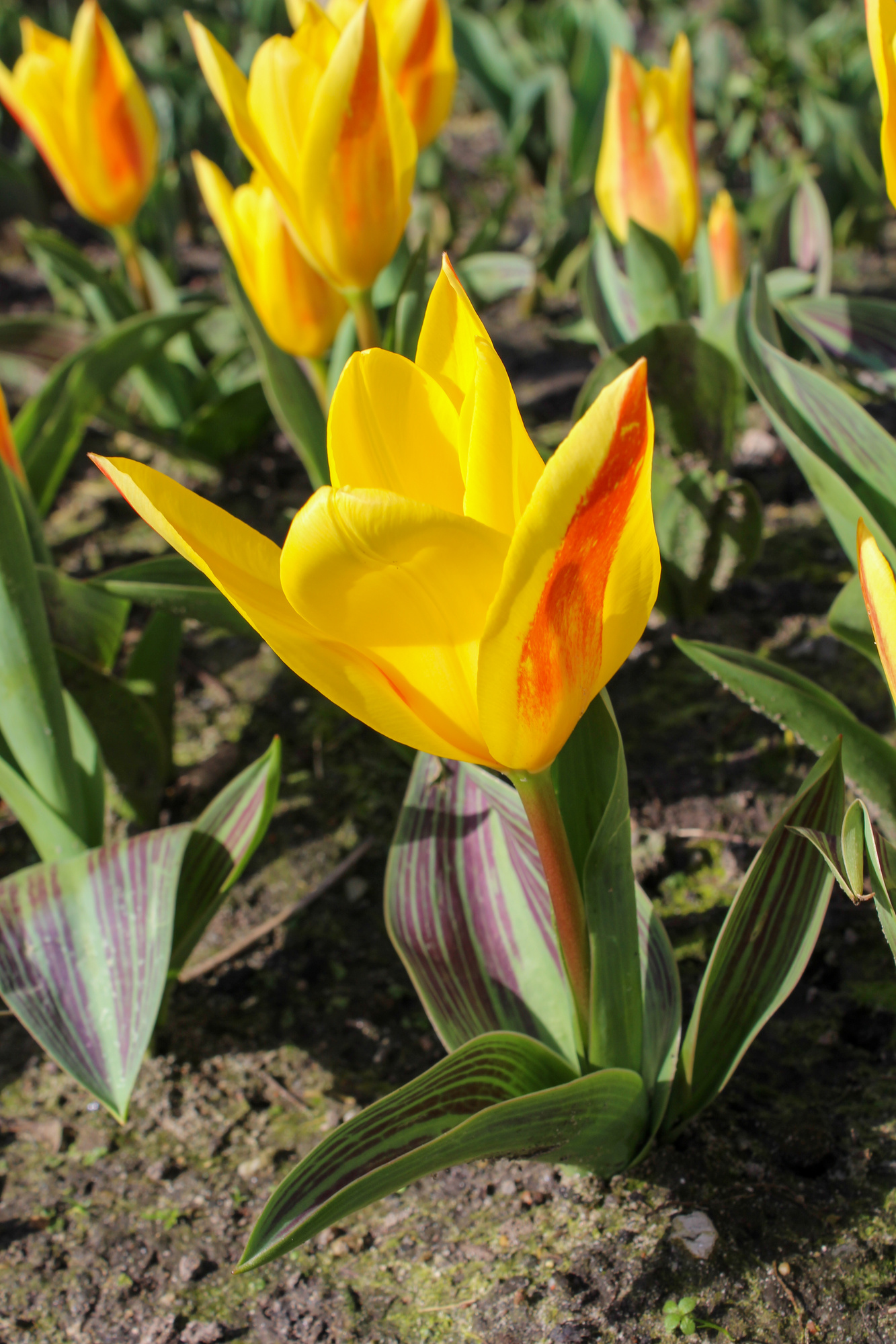 Farbbeschreibung: Karminrot, Schwefelgelber Rand, Blätter Gefleckt| Kurzbezeichnung : | Kaufmanniana-Tulpen Glück |
