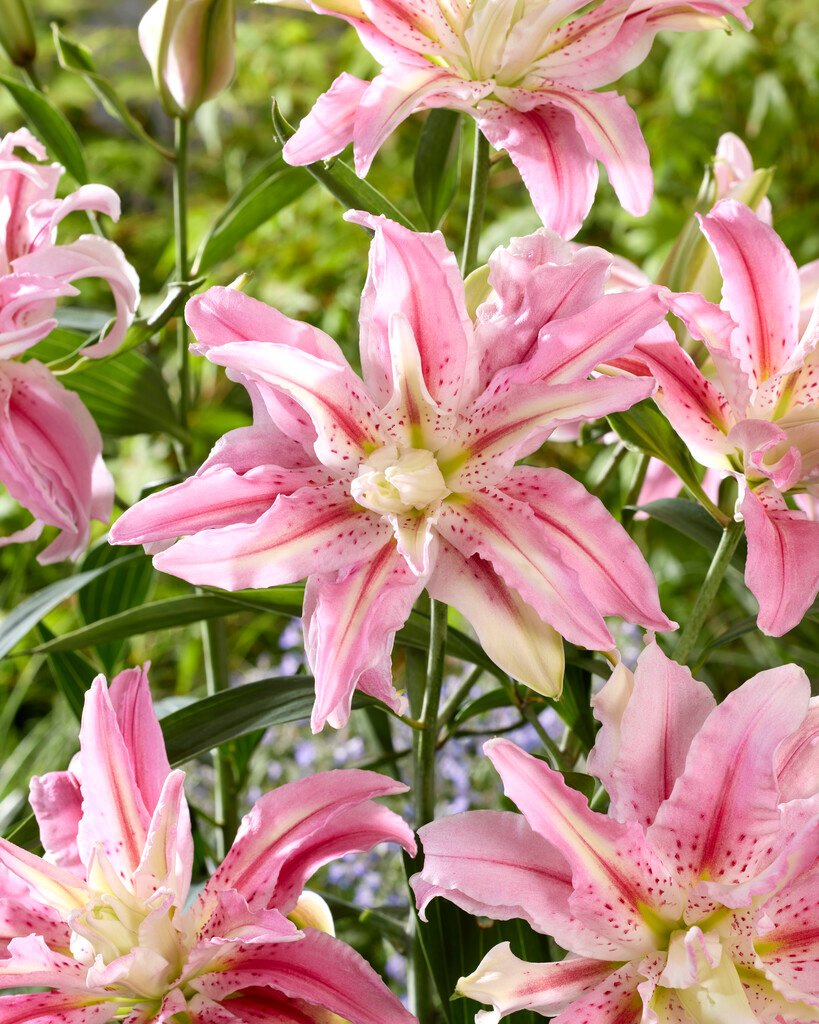 Farbbeschreibung: Rosa, weiß mit Mittelstrich und Tupfen in Purpur; gefüllt| Kurzbezeichnung : | Lilien Broken Heart |