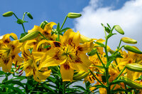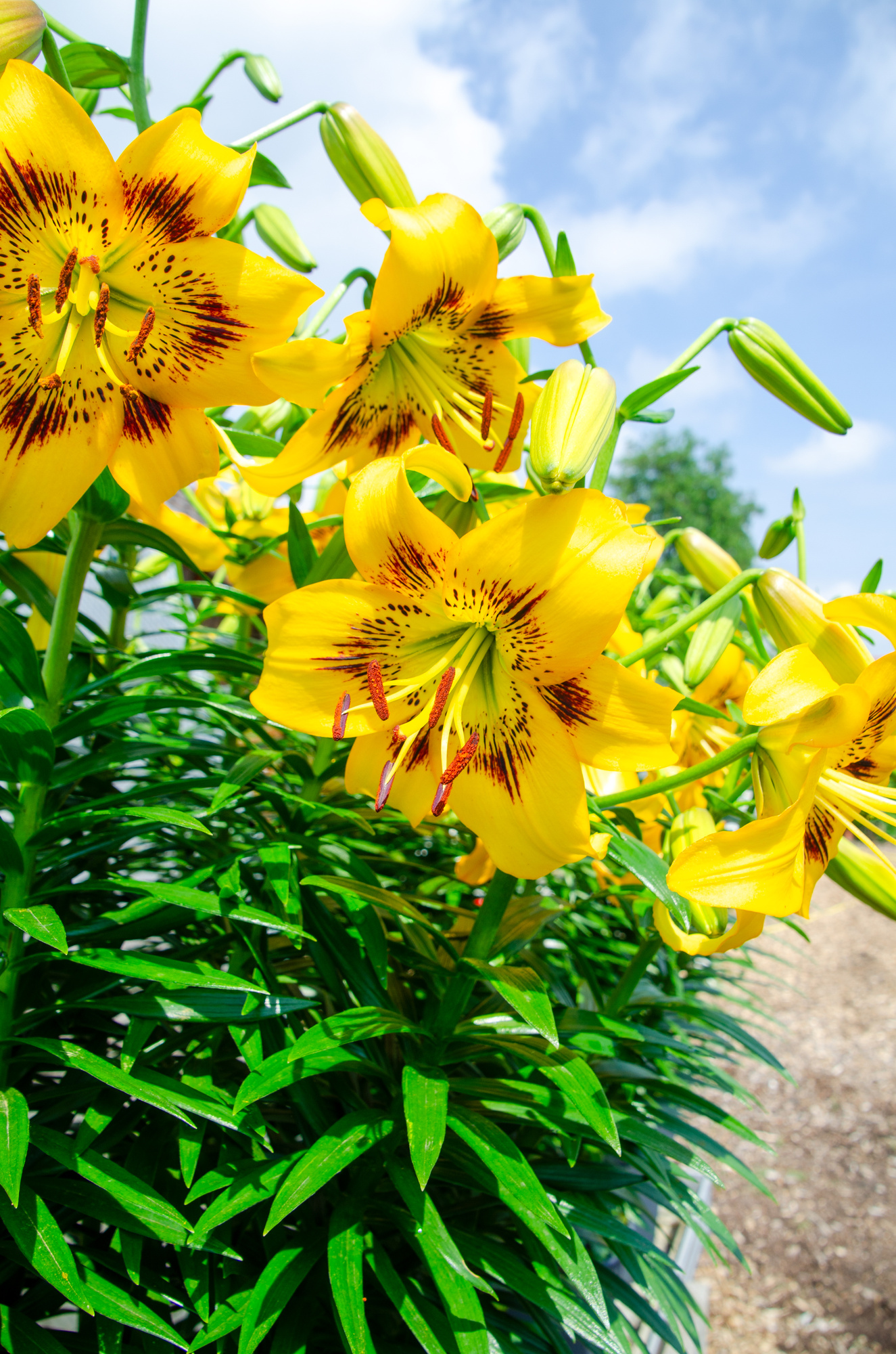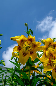 Asiatische-Hybride; oft als gelbe Tiger-Lilie bezeichnet; AGM-Auszeichnung (Award of Garden Merit) Diese Qualitätsauszeichnung erhalten seit 1922, durch die britische Royal Horticultural Society (RHS), Gartenpflanzen mit herausragenden Eigenschaften und Leistungen.| Kurzbezeichnung : | Lilien Yellow Bruse |