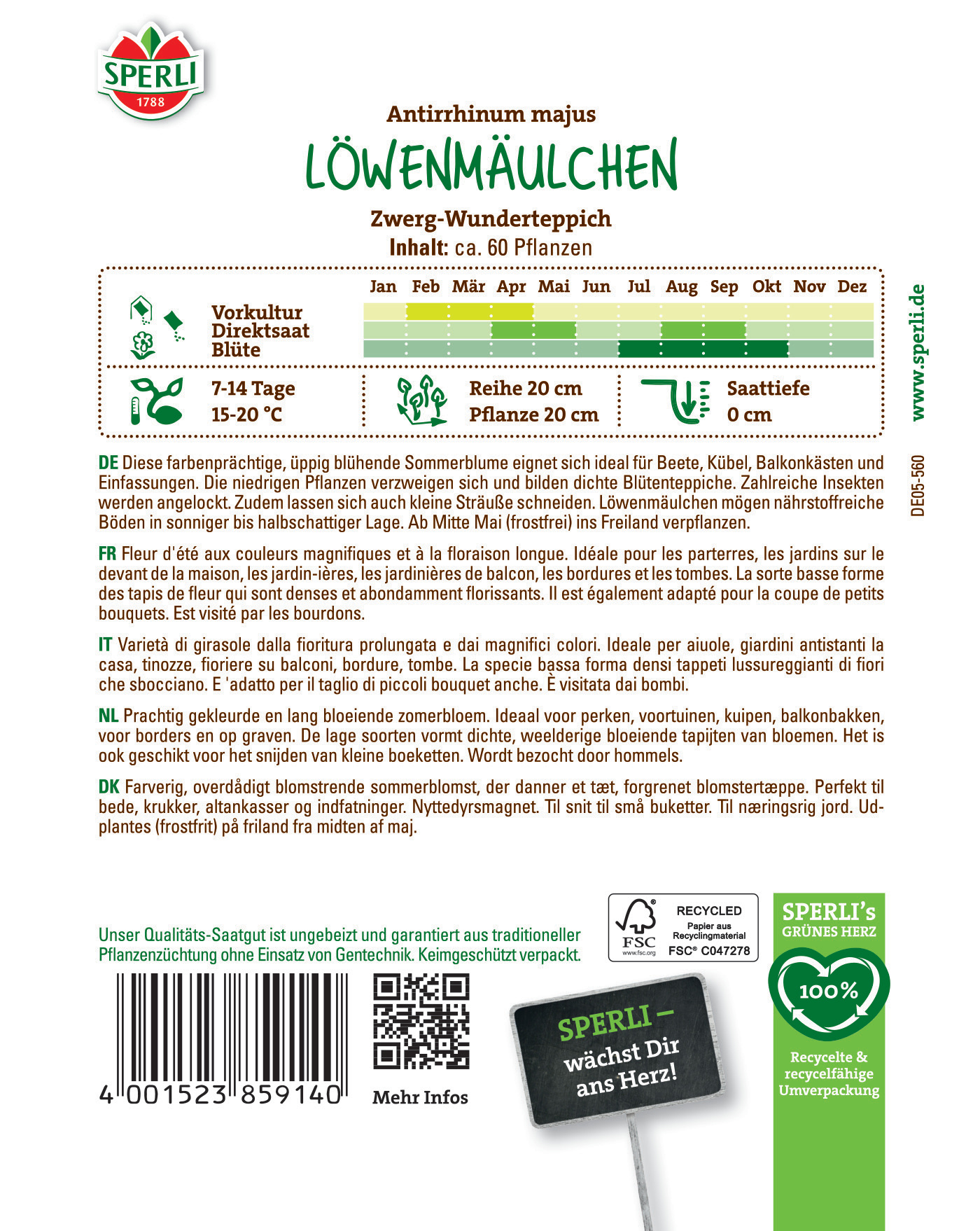 | Inhalt reicht für ca.: | 60 Pflanzen |