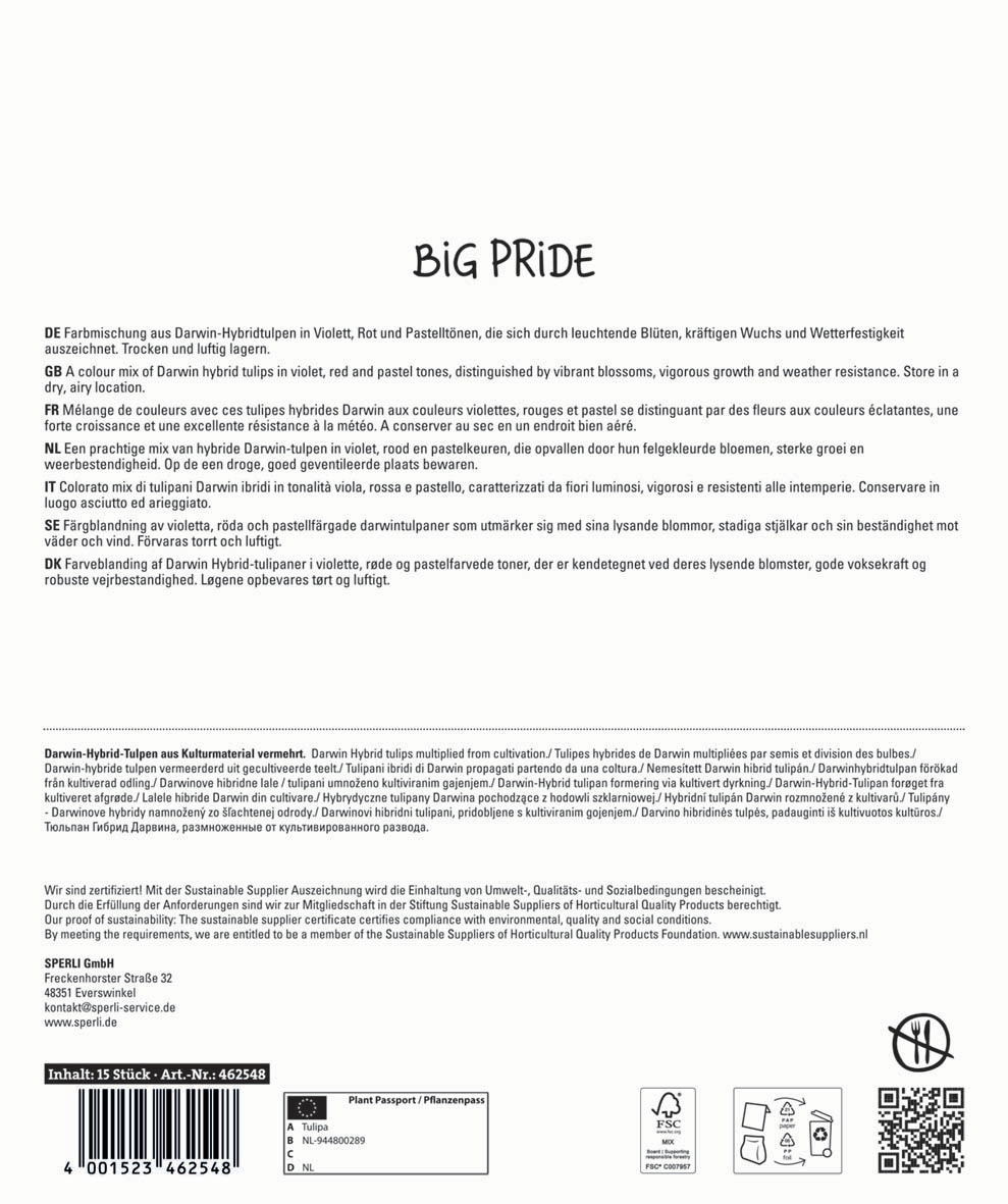 | Kurzbezeichnung : | Maxi Tulpen Big Pride Mischung |