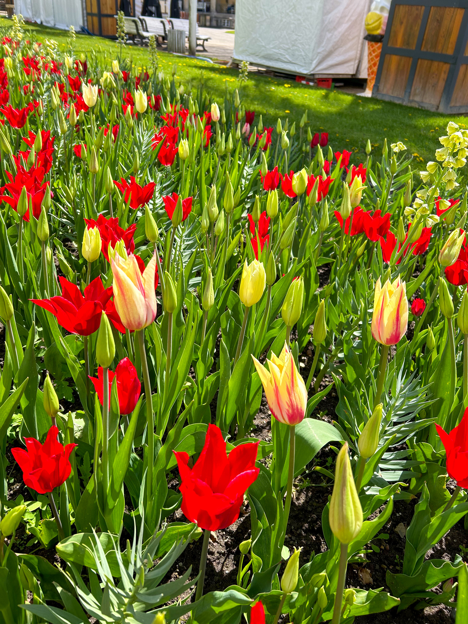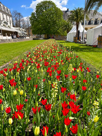 Die Fürstliche Blütenballade setzt sich vorrangig aus langstieligen und edlen, lilienblütigen Tulpen zusammen. Die Komposition der Farben ist in Anlehnung der Symbolik, welche früher auf den Flaggen und Wappen vieler europäischer Fürstentümer sowie Adelshäuser verwendet wurden, welche sogar noch bis heute auf vielen Flaggen zu finden sind. Mehr Dynamik und Eleganz erhält die Mischung durch die hochwüchsigen Fritillaria persica `Magic Bells‘. Ihre Blütenfarben unterstreichen die Farben der Tulpenblüten und lässt somit den Gesamteindruck noch harmonischer wirken.