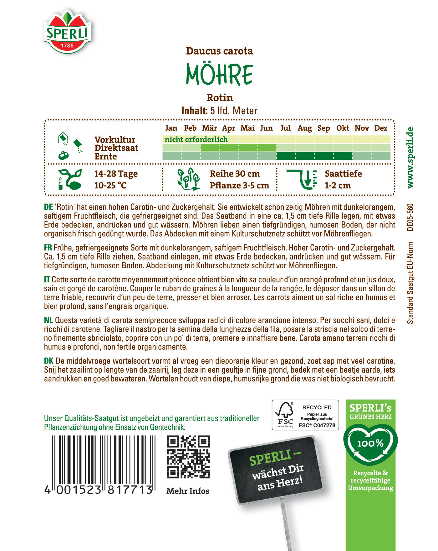Produktinformationen "Möhrensamen Rotin, Saatband"