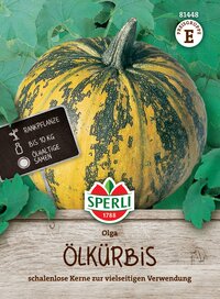 Der Kürbis 'Olga' gehört zu den Kürbis-Raritäten im SPERLI-Sortiment. Es handelt sich um einen Ölkürbis, der nicht nur schnell, sondern auch rankend wächst und grün-gelbe Kürbisse mit einem Durchmesser von ca. 30 cm hervorbringt. Ab September kannst Du diese ernten und aus den wohlschmeckenden, hüllenlosen Kernen hochwertiges Kürbiskernöl herstellen. Doch auch wenn Du kein Öl herstellen möchtest, ist dieser Kürbis etwas für Dich. Die Kerne können nämlich auch getrocknet, geröstet und anschließend verzehrt werden – eine Delikatesse als Topping auf Salat und Suppe!