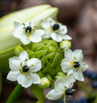 - Blüten reinweiß mit schwarzen Fruchtknoten
