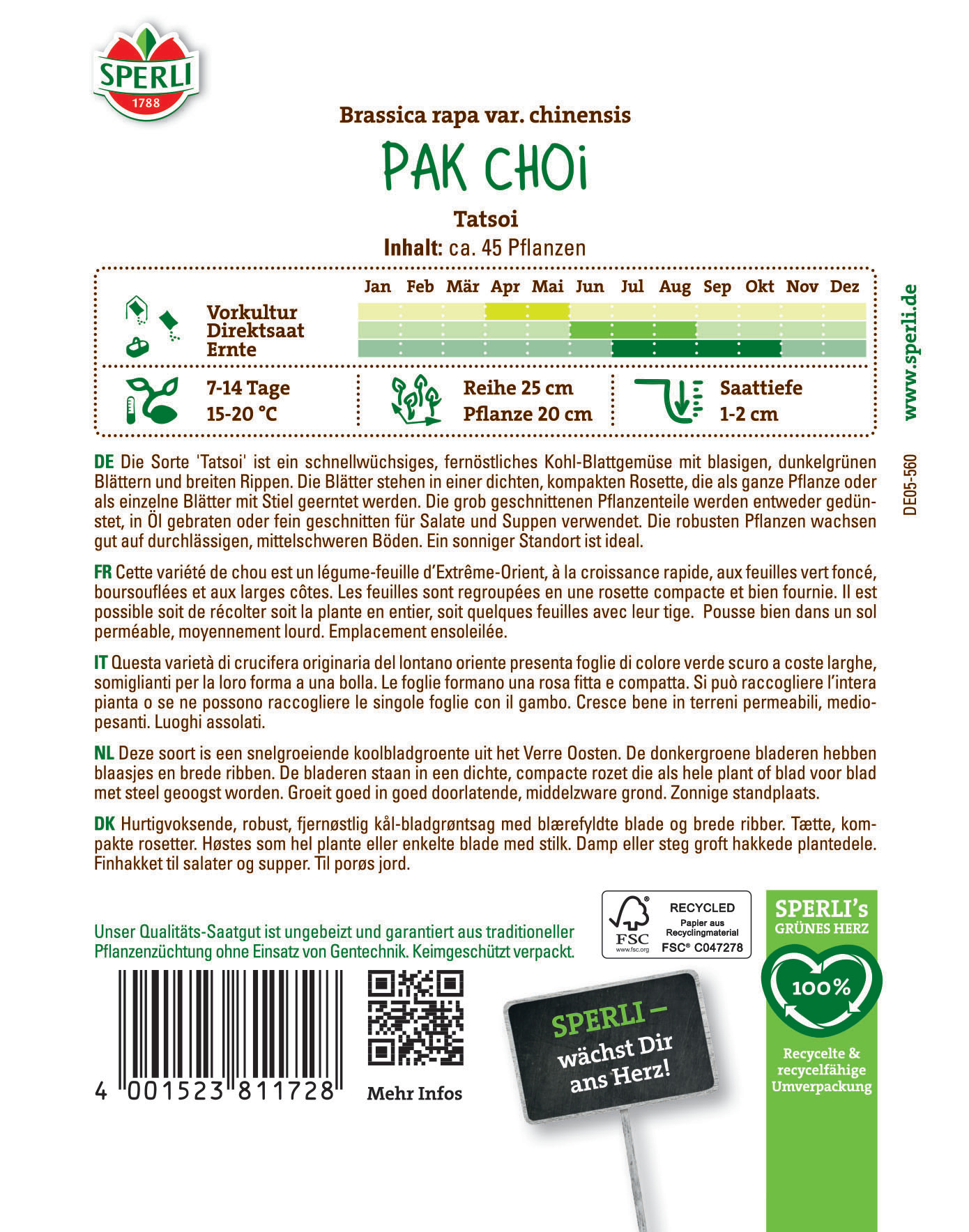 | Kurzbezeichnung : | Pak Choi Tatsoi |