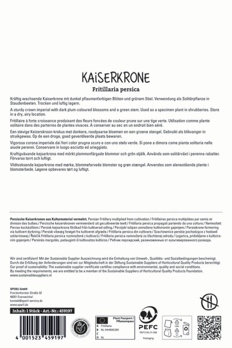 Selbstverständlich kannst Du diese winterharte und mehrjährige Kaiserkrone aber auch in Gruppen kultivieren oder ganz einfach verwildern lassen. Pflanze sie ab September an ein halbschattiges bis sonniges Plätzchen, dann wirst Du im April Deine Freude an der außergewöhnlichen Naturschönheit haben!