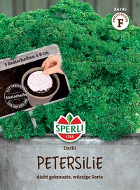 Du magst frische Petersilie und möchtest die Anzucht schnell und einfach halten? Dann solltest Du die Saatscheiben für die Petersilie 'Darki' unbedingt ausprobieren! Die Scheiben, auf welchen sich das Saatgut befindet, musst Du nur in einen Topf mit keimfreier Anzucht legen, andrücken, leicht mit Erde bedecken und danach kontinuierlich feucht halten. Schon nach kurzer Zeit entwickeln sich die Pflanzen mit ihren dicht gekrausten Blättern, würzigen Geschmack und hohem Vitamin-C-Gehalt.