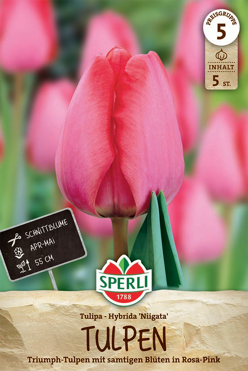 Wenn Du die Tulpenzwiebeln bis zur Kultivierung luftig und trocken aufbewahrst, wird die Anzucht gelingen und Dich 'Niigata' im April und Mai mit ihren wunderschönen Blüten begeistern. Unser Tipp: Teste aus, wie stilvoll 'Niigata' in Deiner schönsten Vase aussieht, denn sie ist auch eine hervorragende Schnittblume!