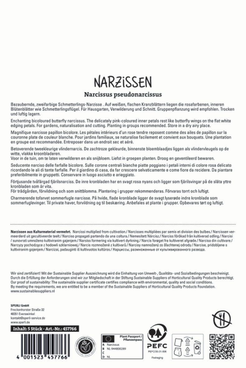 Die rund 45 cm hohe, mehrjährige und winterharte Narzisse gedeiht an sonnigen und halbschattigen Standorten prächtig. Pflanze sie am besten in Gruppen oder lasse sie mit der Zeit auf natürliche Weise verwildern, um ein noch eindrucksvolleres Gesamtbild zur Blütezeit zu erhalten!