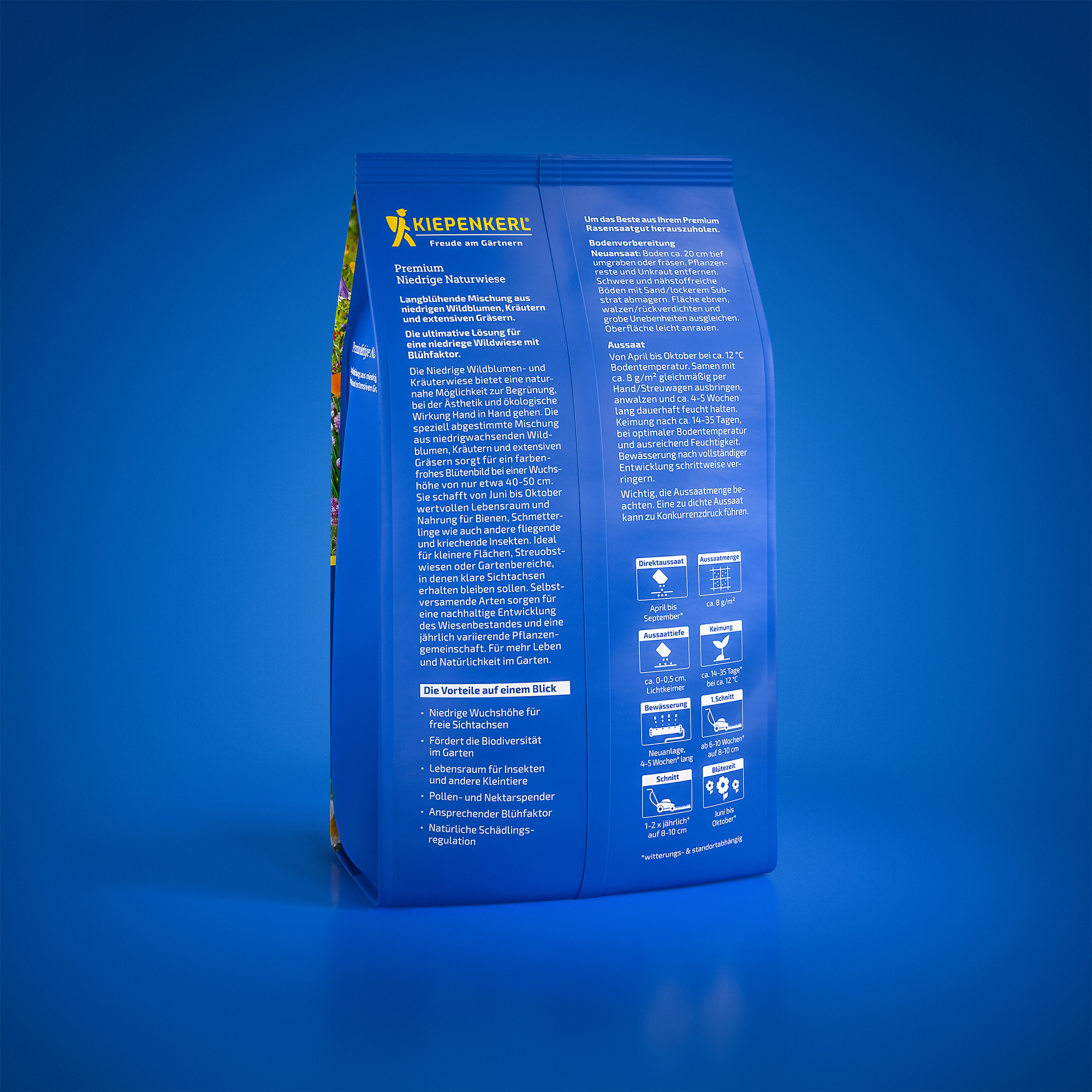 Die Niedrige Naturwiese bietet eine naturnahe Möglichkeit zur Begrünung, bei der Ästhetik und ökologische Wirkung Hand in Hand gehen. Die speziell abgestimmte Mischung aus niedrigwachsenden Wildblumen, Kräutern und extensiven Gräsern sorgt für ein farbenfrohes Blütenbild bei einer Wuchshöhe von nur etwa 40 - 50 cm. Sie schafft von Juni bis Oktober wertvollen Lebensraum und Nahrung für Bienen, Schmetterlinge wie auch andere fliegende und kriechende Insekten. Ideal für kleinere Flächen, Streuobstwiesen oder Gartenbereiche, in denen klare Sichtachsen erhalten bleiben sollen. Selbstversamende Arten sorgen für eine nachhaltige Entwicklung des Wiesenbestandes und eine jährlich variierende Pflanzengemeinschaft. Für mehr Leben und Natürlichkeit im Garten.