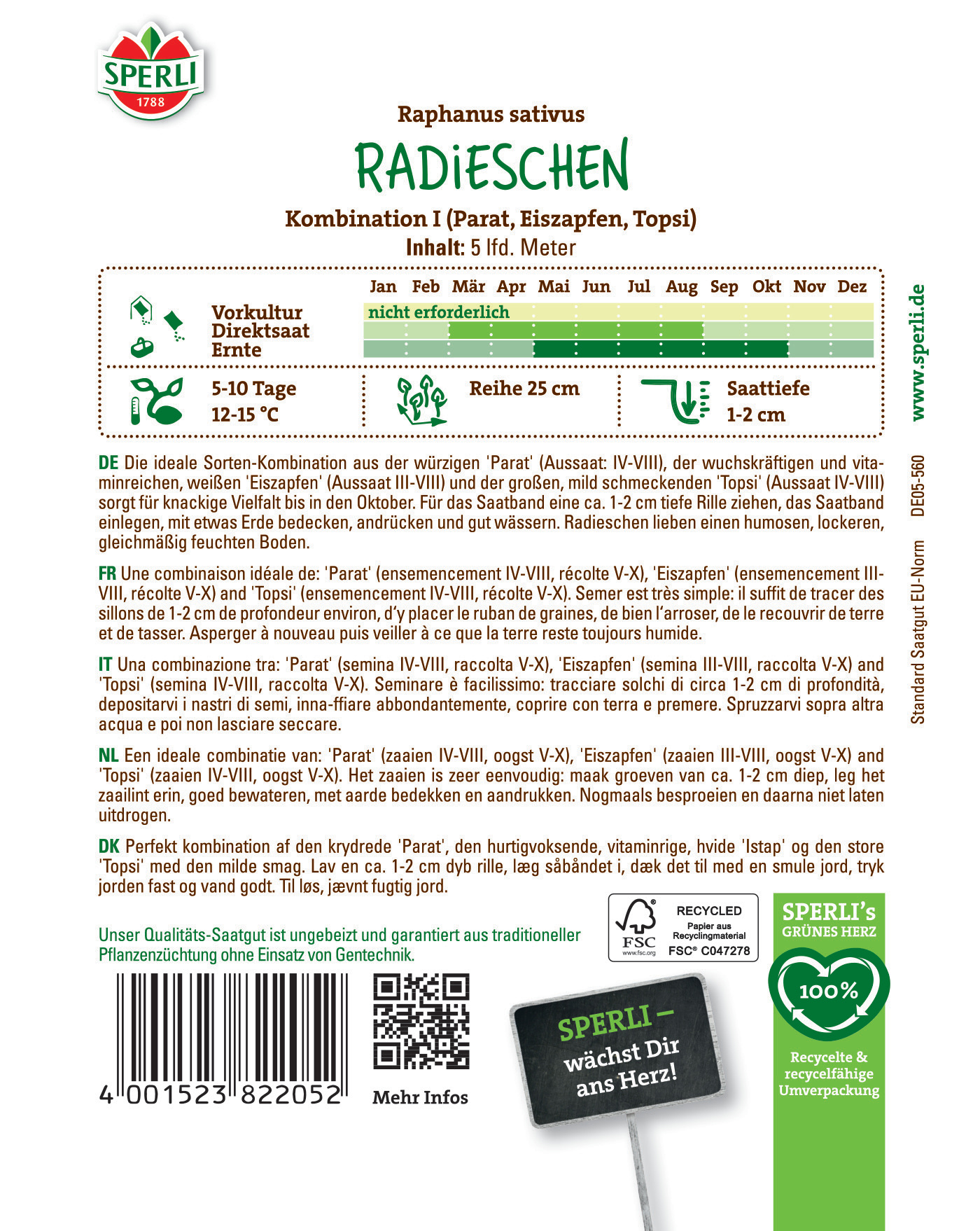 | Kurzbezeichnung : | Radieschen Kombination I, Saatband |