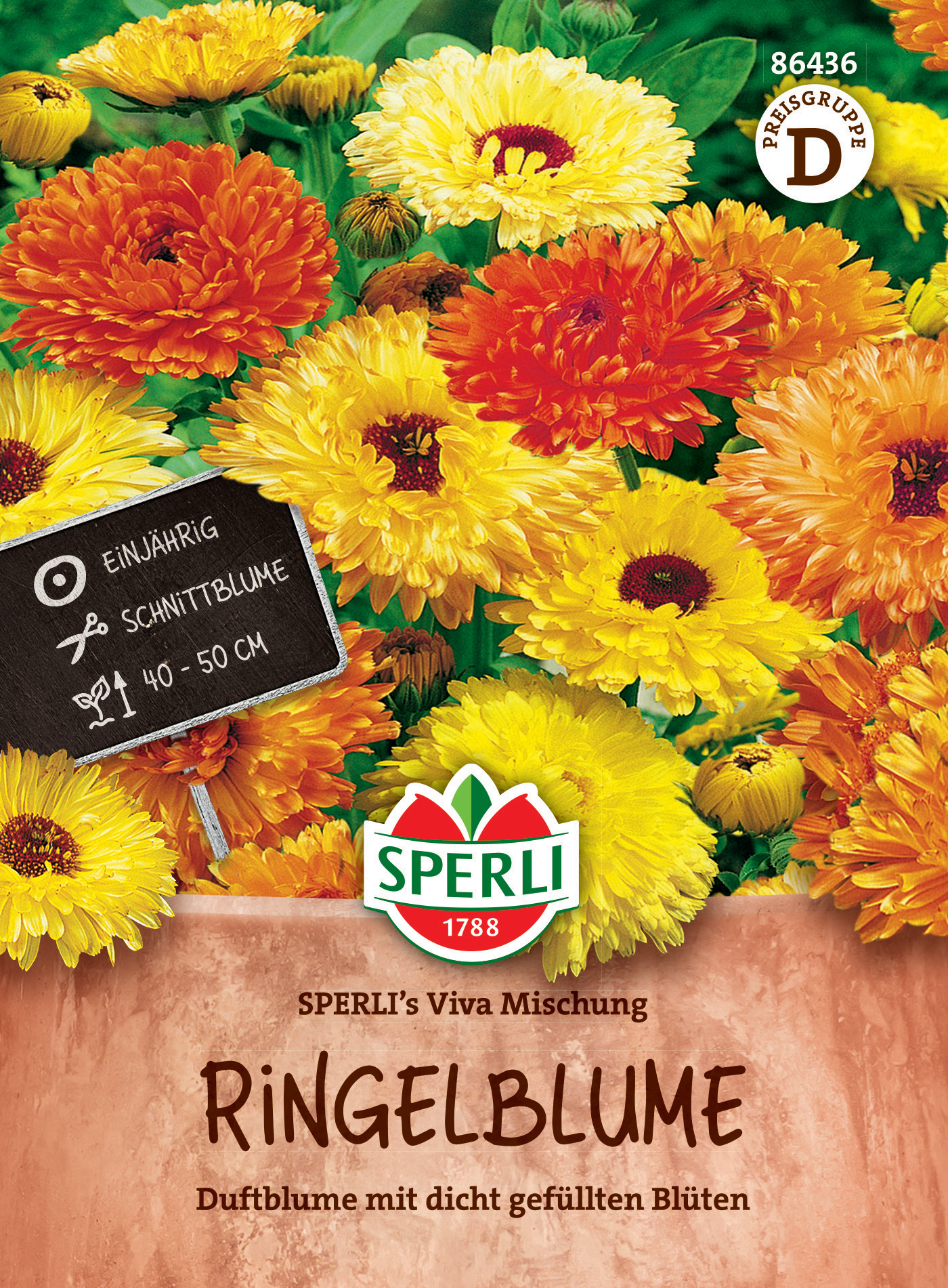SPERLI's Viva Mischung enthält einjährige Beet- und Gartenpflanzen in verschiedenen Gelb- und Orangetönen. Bestens geeignet für Mischkulturen sowie zur Bepflanzung von Bauerngärten, Rabatten und Beeten oder als Schnittblumen. Höhe: 50 cm.| Kurzbezeichnung : | Ringelblume SPERI's Viva Mischung |