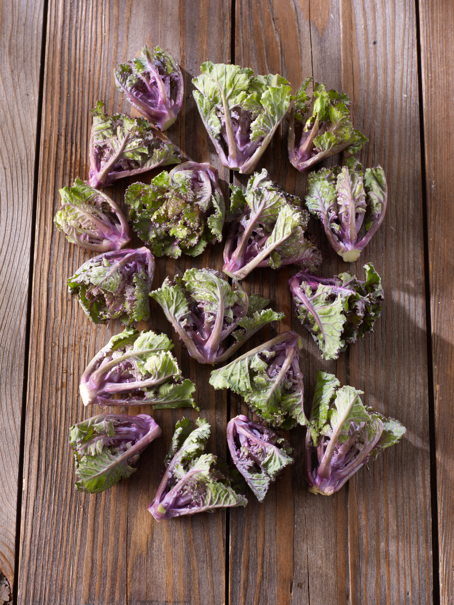 Bei dem Rosenkohl 'Flower Sprouts® Autumn Star' handelt es sich um ein ganz neues Gemüse, das aus der Kreuzung von Grün- und Rosenkohl hervorgegangen ist. Die Pflanzen sehen aus wie Grünkohl, bilden aber wie Rosenkohl in den Blattachseln kleine Knospen. Diese wiederum sehen aus wie Rosenblüten.