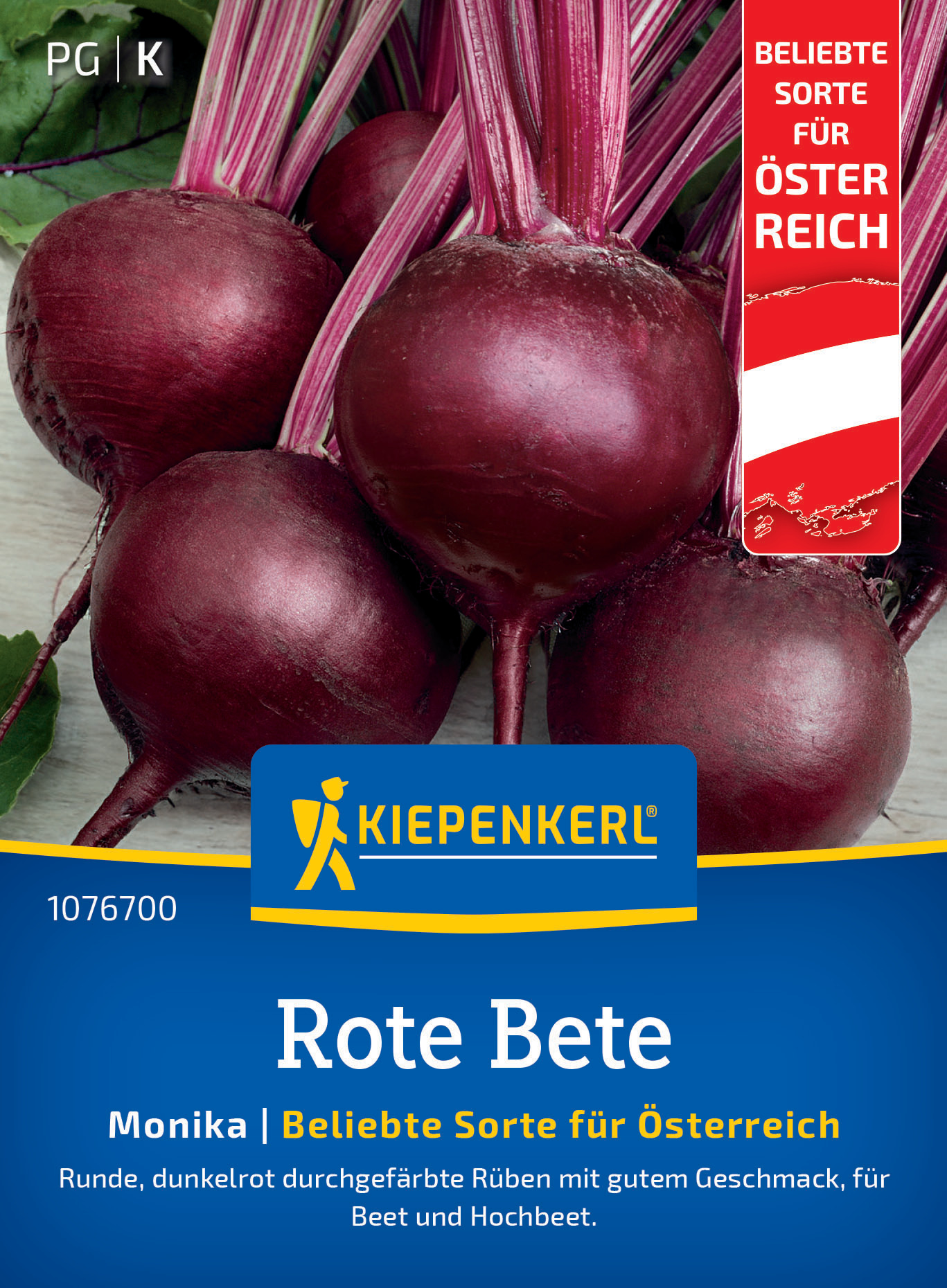 Die Rote Bete 'Monika' ist in österreichischen Gärten eine hervorragende Wahl. Diese einkeimige (monogerme) Sorte erleichtert den Anbau durch einfaches Verziehen nach der Keimung. 'Monika' bildet runde, dunkelrote Rüben, die sich durch ihren mild-süßen Geschmack auszeichnen. Diese Rote Bete ist perfekt für den Anbau im Freiland geeignet und bietet eine vielseitige Ergänzung für jeden Garten. Dank der Möglichkeit, die Samen dichter zu säen, können auch kleine Baby-Beets geerntet werden, die unter Feinschmeckern sehr beliebt sind. Diese können roh als feine Rohkost, i, Salat oder zum Saften verwendet werden. Größere Rüben eignen sich hervorragend zum Kochen, Einfrieren oder Einlegen. Sie können sie direkt mit der Schale kochen und anschließend schälen, um die kulinarische Vielseitigkeit der Roten Bete zu genießen. Ein sonniger Standort ist ideal für das Wachstum der Roten Bete 'Monika'. Die Aussaat erfolgt als Direktsaat ab April, was einen zeitigen Start in die Gartensaison ermöglicht. Die Ernte beginnt ab Juli und kann über mehrere Monate hinweg erfolgen. Diese pflegeleichte und ertragreiche Sorte ist sowohl für erfahrene Gärtner als auch für Anfänger geeignet. Eine "beliebte Sorte für Österreich".| Kurzbezeichnung : | Rote Bete Monika (Regional AT) |