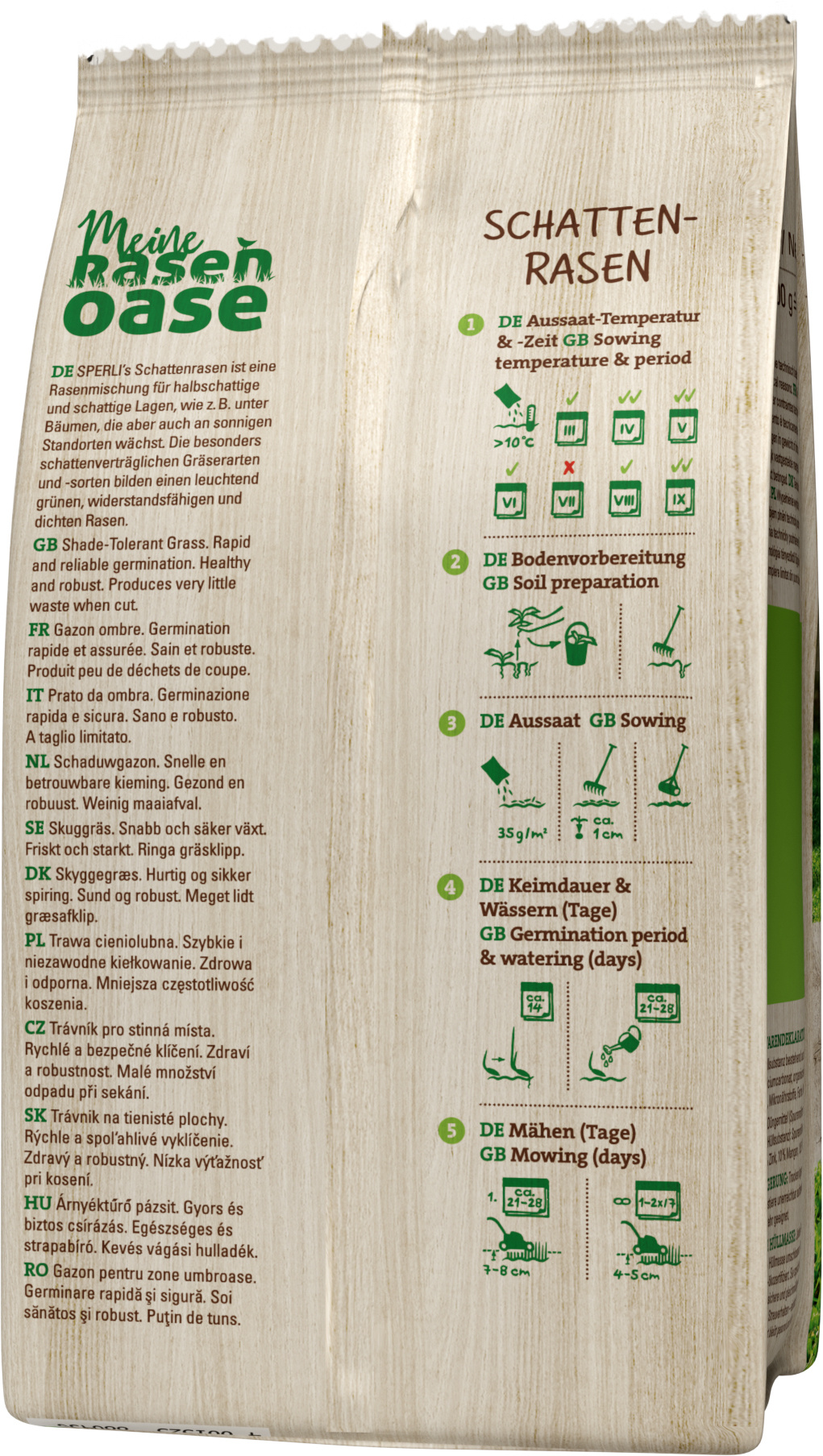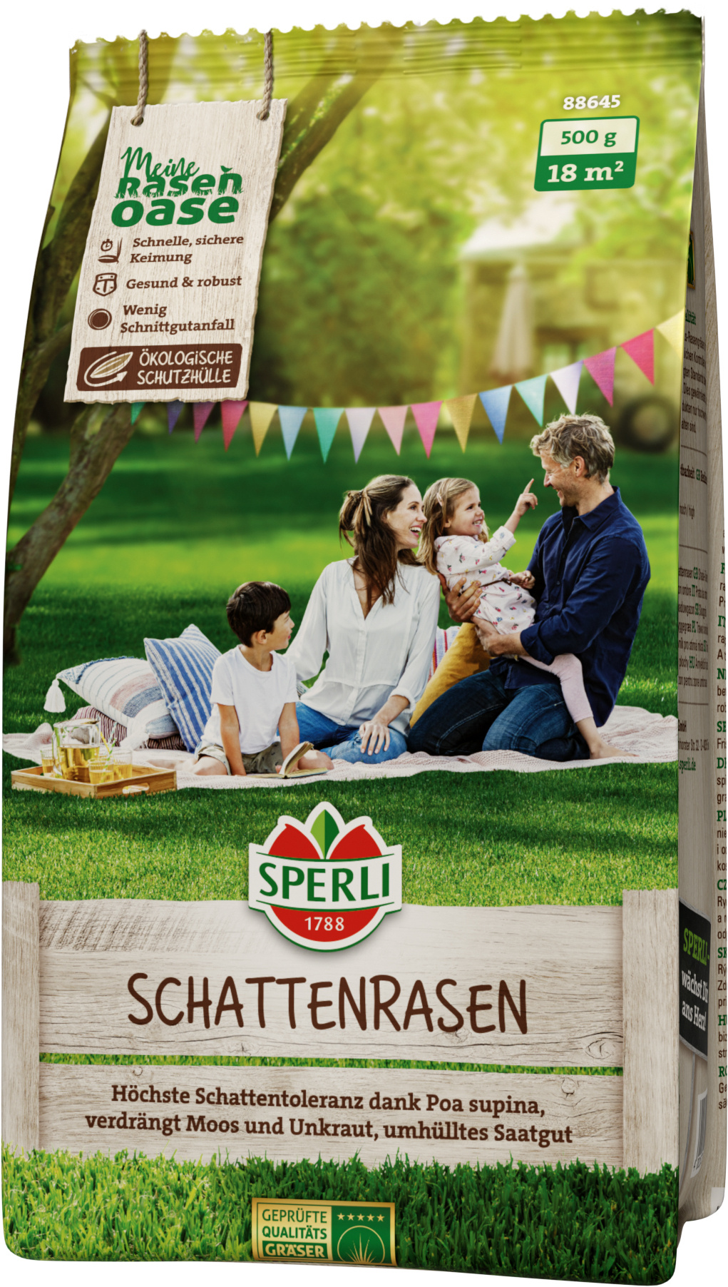 SPERLI's Schattenrasen bietet eine einfache Handhabung durch gutes Streuverhalten und gewährleistet stets gesundes, vitales Saatgut.