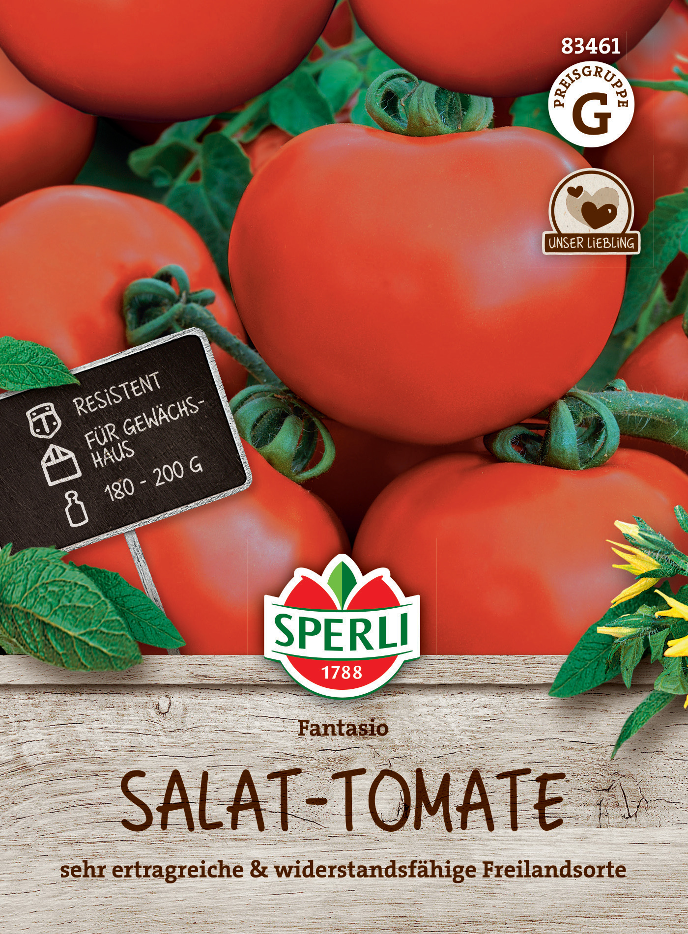 Die Tomate 'Fantasio' ist eine wohlschmeckende, großfruchtige und ertragreiche F1-Hybride für den Anbau im geschützten Freiland. Ihre Früchte sind ca. 180 bis 200 g schwer, leicht abgeflacht und platzfest. Ihre intensiv rote Färbung und ihr angenehmes Aroma wird Dich begeistern! Aufgrund ihrer eher festen Schale sind die Früchte ausgezeichnet für Salate geeignet.