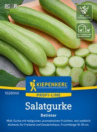 Die Salatgurke 'Delistar' bildet hellgrüne, bitterfreie, kernarme Midi-Gurken, die eine Länge von 16-18 cm erreichen. Diese aromatischen Früchte sind besonders festfleischig und äußerst bekömmlich, was sie zur perfekten Wahl für Kinder macht. Ein Schälen der dünnen Schale ist nicht nötig, was die Zubereitung schnell und unkompliziert macht. Die Pflanze ist rein weiblich blühend, was bedeutet, dass aus jeder Blüte ohne Befruchtung eine Frucht entsteht. Zudem eignet sie sich hervorragend für den Anbau in Gewächshäusern oder Folientunneln. Mit ihrem süßen, gehaltvollen Geschmack ist die 'Delistar' nicht nur ideal für frische Salate, sondern auch für jede Art von Snack zwischendurch. Die robusten Pflanzen sind einfach zu kultivieren und liefern über die gesamte Saison hinweg eine reichhaltige Ernte. Probieren Sie diese köstlichen Gurken aus Ihrem eigenen Garten und genießen Sie den vollmundigen Geschmack! Holen Sie sich die Salatgurke 'Delistar' und bereichern Sie Ihren Garten!| Kurzbezeichnung : | Salatgurke Delistar, F1 |