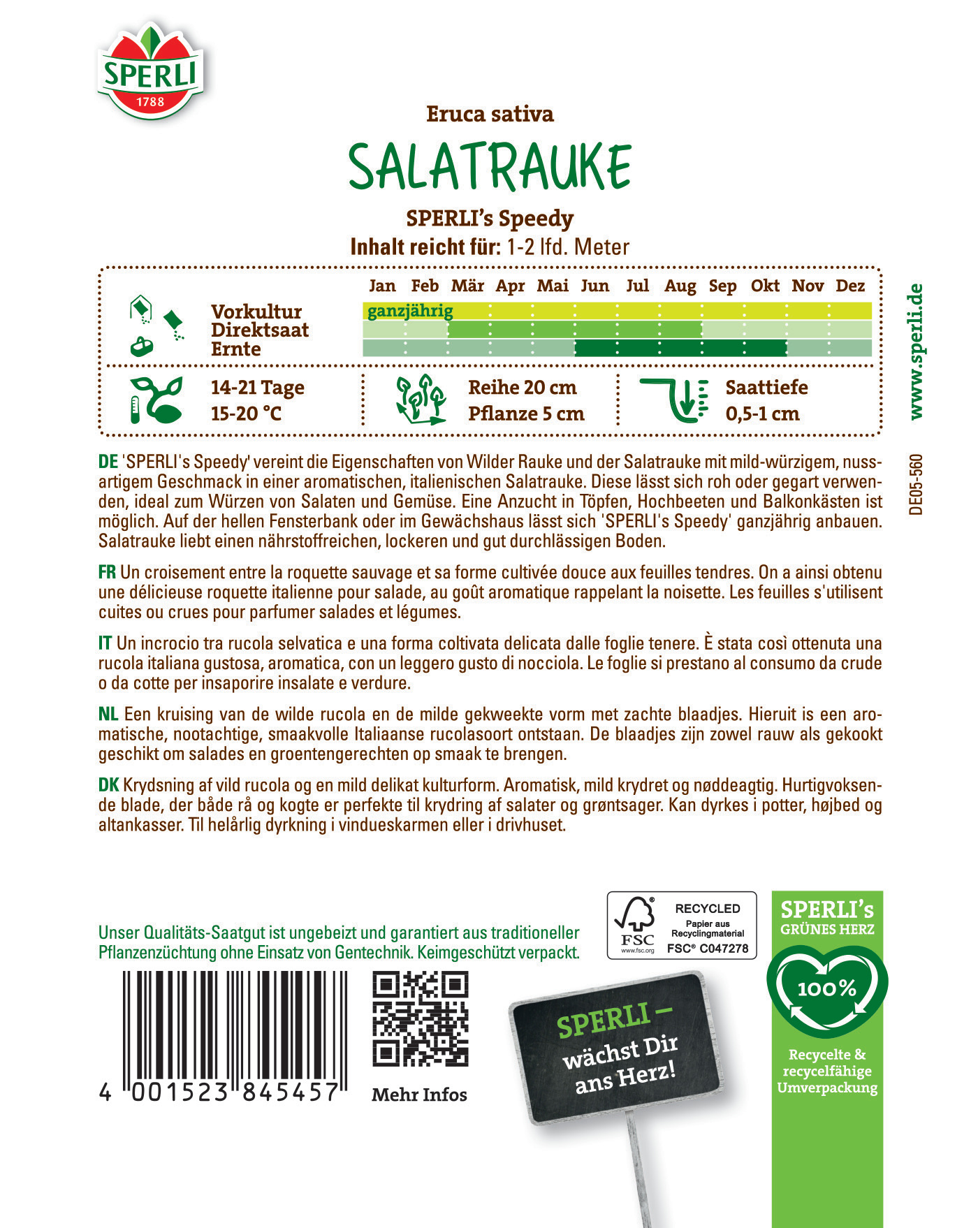 | Kurzbezeichnung : | Salatrauke SPERLI's Speedy |