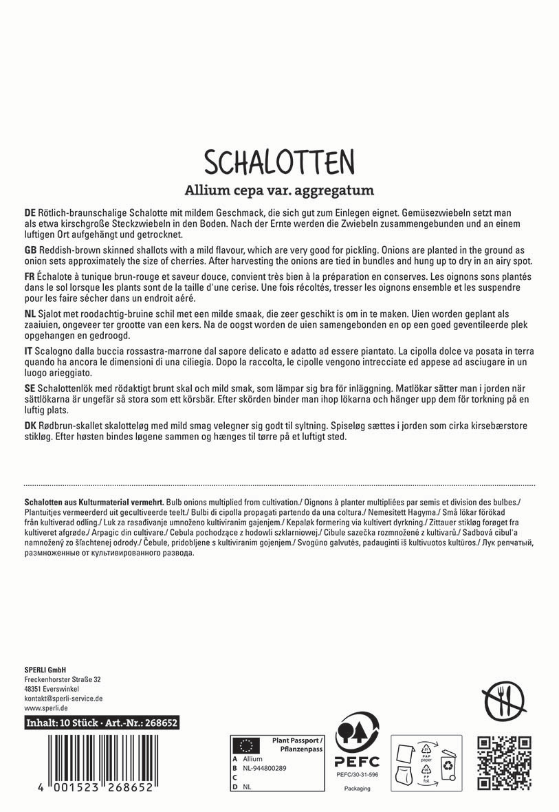 Die rötliche Schalotte 'Biztro' hat ein hervorragendes mildes Aroma, wodurch sie sich bestens zum Einlegen eignet. Im Frühling steckst Du die Zwiebeln in die Erde. Zu diesem Zeitpunkt sind sie noch etwa so groß wie Kirschen. Im Sommer dann kannst du die ausgewachsene, köstliche Schalotte 'Biztro' ernten.Der Unterschied zwischen Zwiebeln und Schalotten, liegt in ihrer Größe sowie Form. Anders als die Steckzwiebeln, wachsen die Schalotten in Horsten, die später aus mehreren Zwiebeln bestehen. Die Schalotten sind daher kleiner und je nach Sorte rund oder oval-länglich. Mit nur einer gesteckten Pflanzschalotte erntest Du also später mehrere Zwiebeln. Schalotten sind etwas würziger und feiner im Aroma, süßlicher im Geschmack, milder und weniger beißend als die bekannten Küchenzwiebeln.