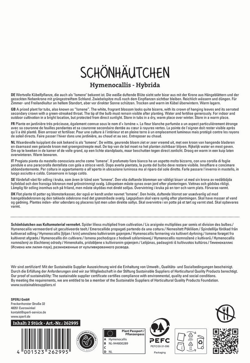 | Botanische Bezeichnung : | Hymenocallis x Hybrida |