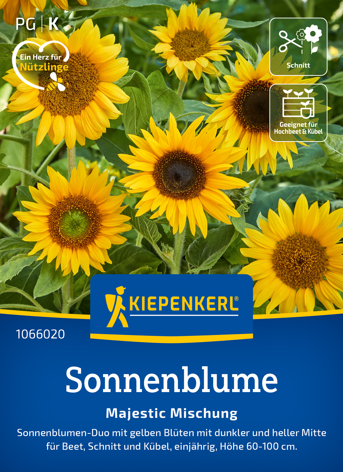 Die Sonnenblumen Majestic-Mischung kombiniert farbenfroh leuchtende Sorten und schafft so ein harmonisches Gesamtbild. Diese üppig blühenden Pflanzen präsentieren sich in leuchtenden Gelbtönen mit einer markanten dunklen Mitte. Sie sind perfekt geeignet, um Ihrem Garten eine fröhliche, einladende Atmosphäre zu verleihen. Erfreuen Sie sich an der Vielfalt und Schönheit dieser Mischung, die sowohl in Beeten als auch als Schnittblumen für stimmungsvolle Arrangements eingesetzt werden kann. Lassen Sie Ihre Gartenfreude erblühen! Bereichern Sie Ihren Garten mit der Sonnenblumen Majestic-Mischung!| Kurzbezeichnung : | Sonnenblume Majestic Mischung |