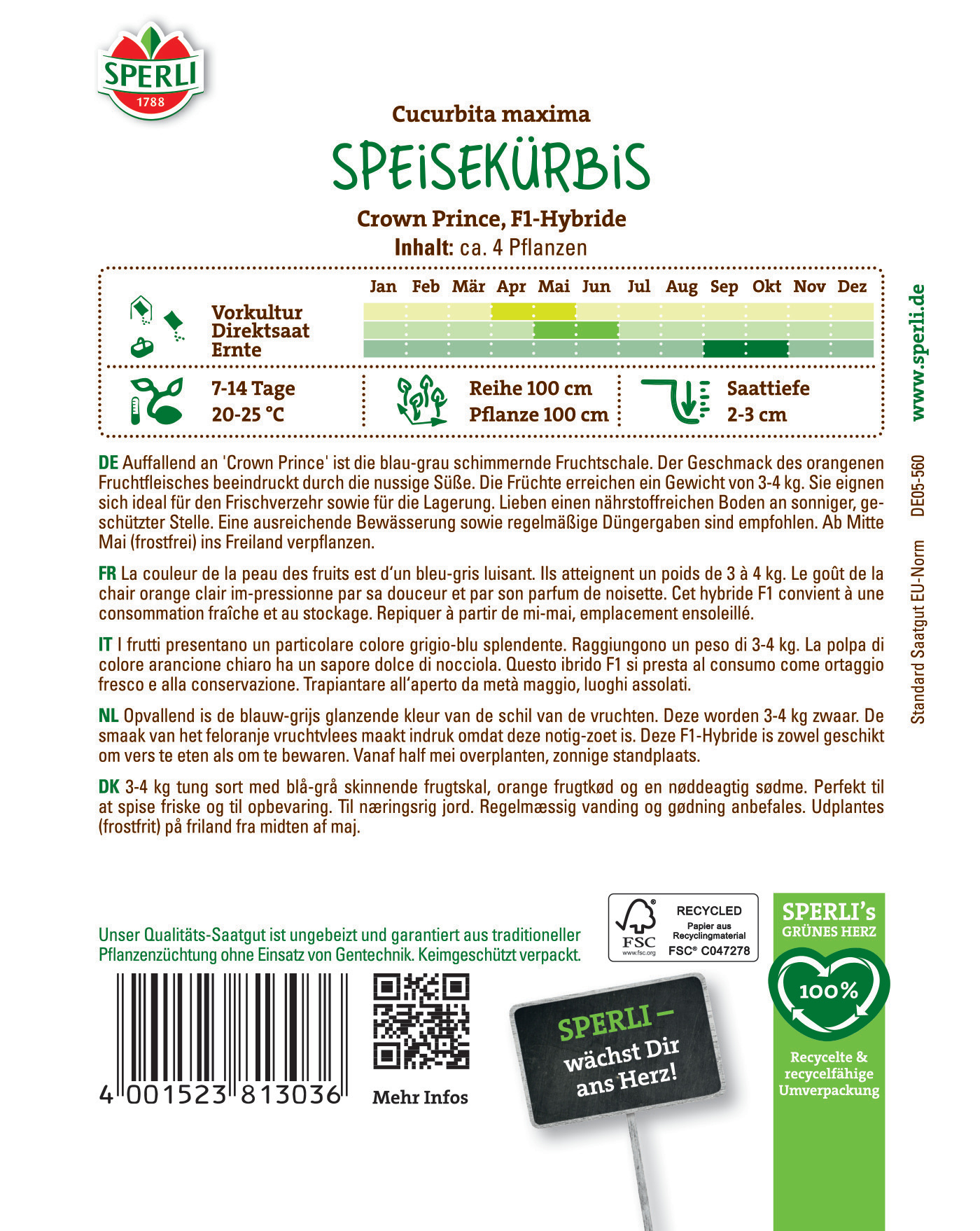 | Kurzbezeichnung : | Speisekürbis Crown Prince, F1 |