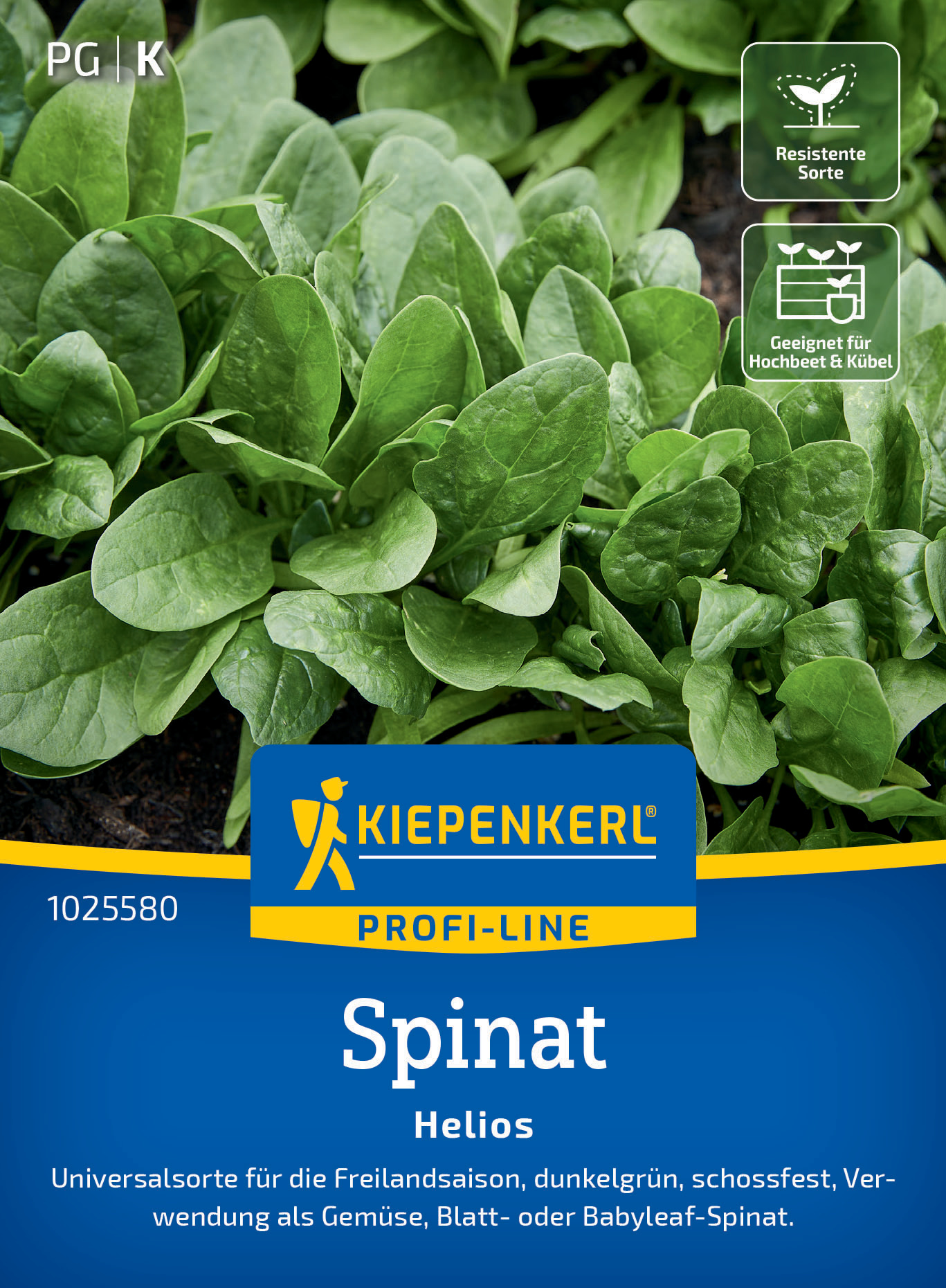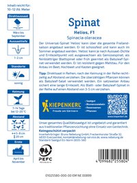 Der Universal-Spinat 'Helios' ist eine äußerst vielseitige Sorte, die über die gesamte Freilandsaison angebaut werden kann. Dank seiner Schossfestigkeit ist er auch im Sommer hervorragend geeignet. Je nach Aussaat-Dichte und Erntezeitpunkt eignet sich 'Helios' sowohl als voll ausgewachsener Gemüsespinat als auch als feiner Blattspinat oder frühe Babyleaf-Variante. Die dunklen, gesunden Blätter bieten Ihnen eine ertragreiche Ernte, die sich ideal für eine gesunde Ernährung eignet. Profitieren Sie von der Robustheit dieser Sorte, die sich für den Anbau im Gemüsebeet, Hochbeet und Kasten eignet. Gärtnern Sie mit dem Universal-Spinat 'Helios' und genießen Sie Ihre Ernte!| Kurzbezeichnung : | Spinat Helios, F1 |