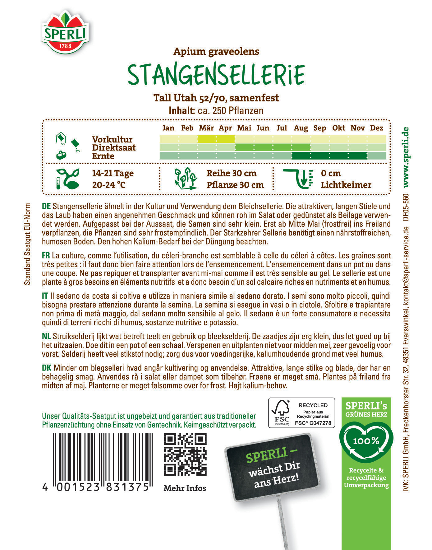 | Kurzbezeichnung : | Stangensellerie Tall Utah 52/70 |