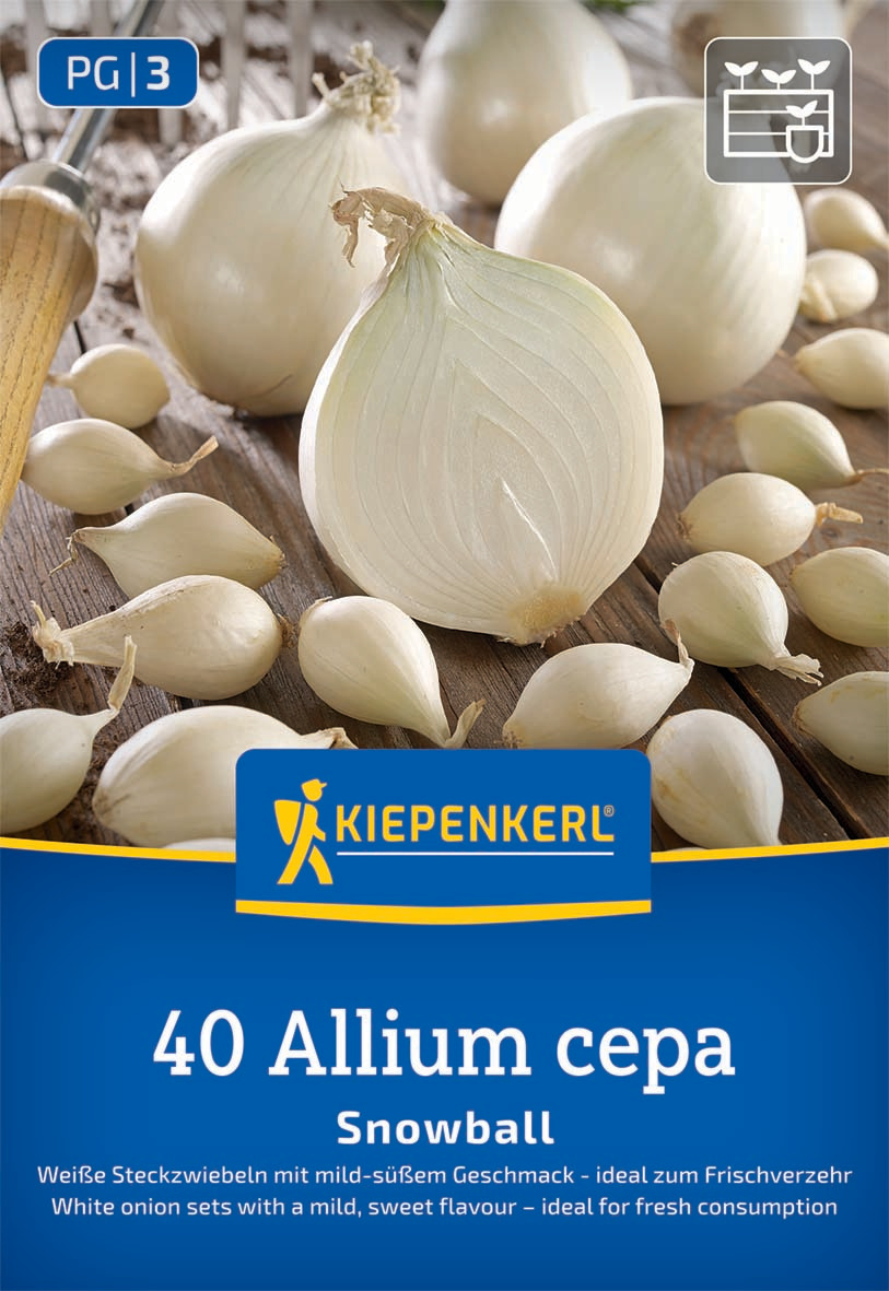 Mit ihrem süß-milden Geschmack überzeugen die Steckzwiebeln 'Snowball'. Dabei verleihen ihre runde Form und die strahlend weiße Farbe dieser Zwiebel ihren Namen. Des Weiteren ist diese Sorte frühreifend und sehr schossfest.
