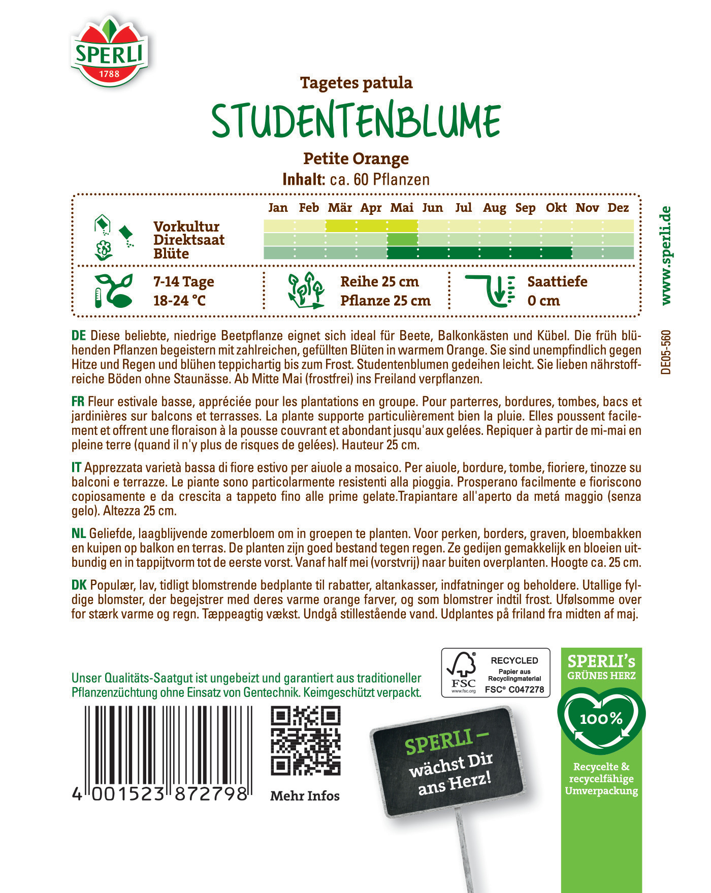 Produktinformationen "Studentenblumensamen Petite Orange"